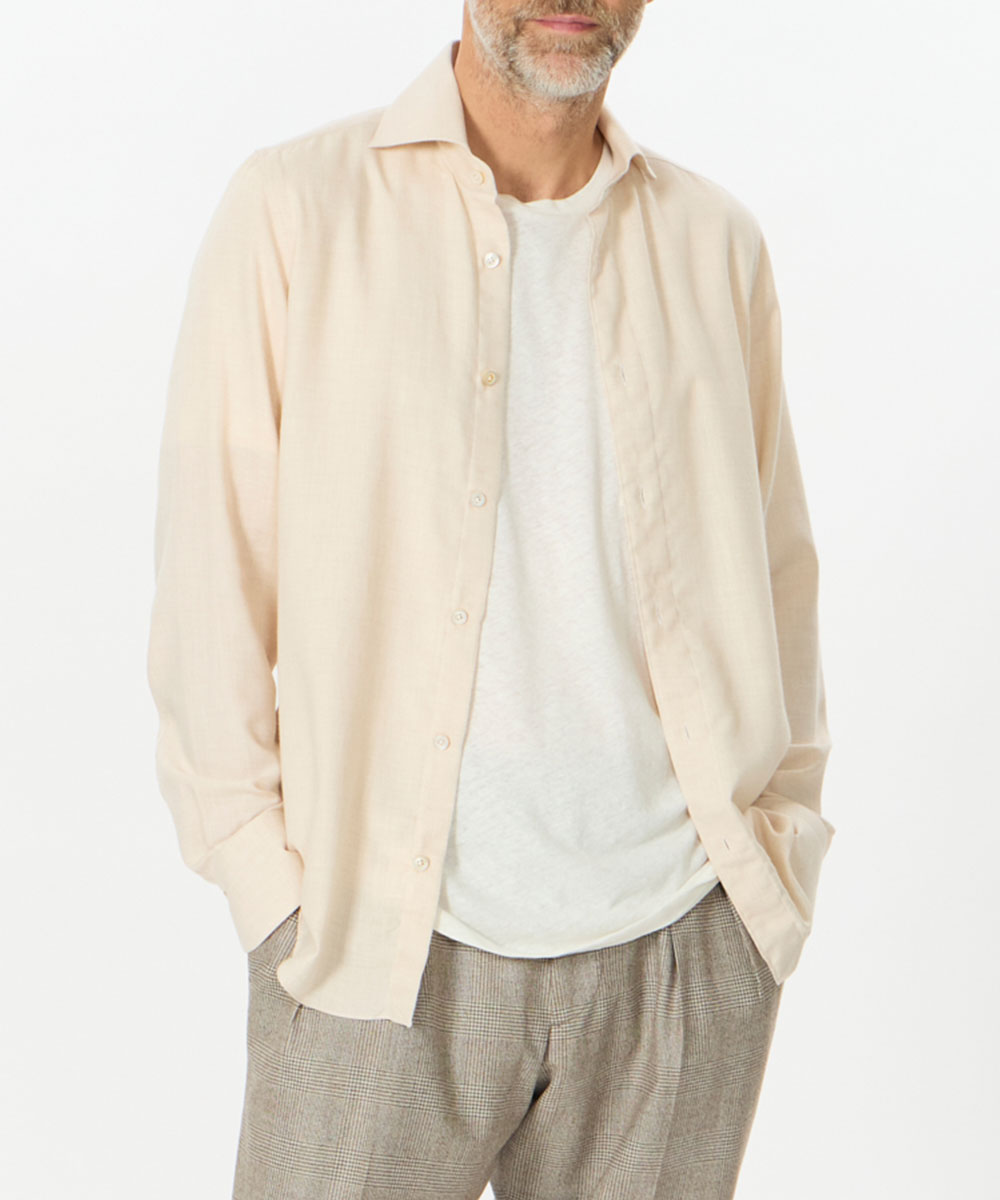 フィナモレ / ストレッチ コットン カッタウェイカラー シャツ ¥46,200