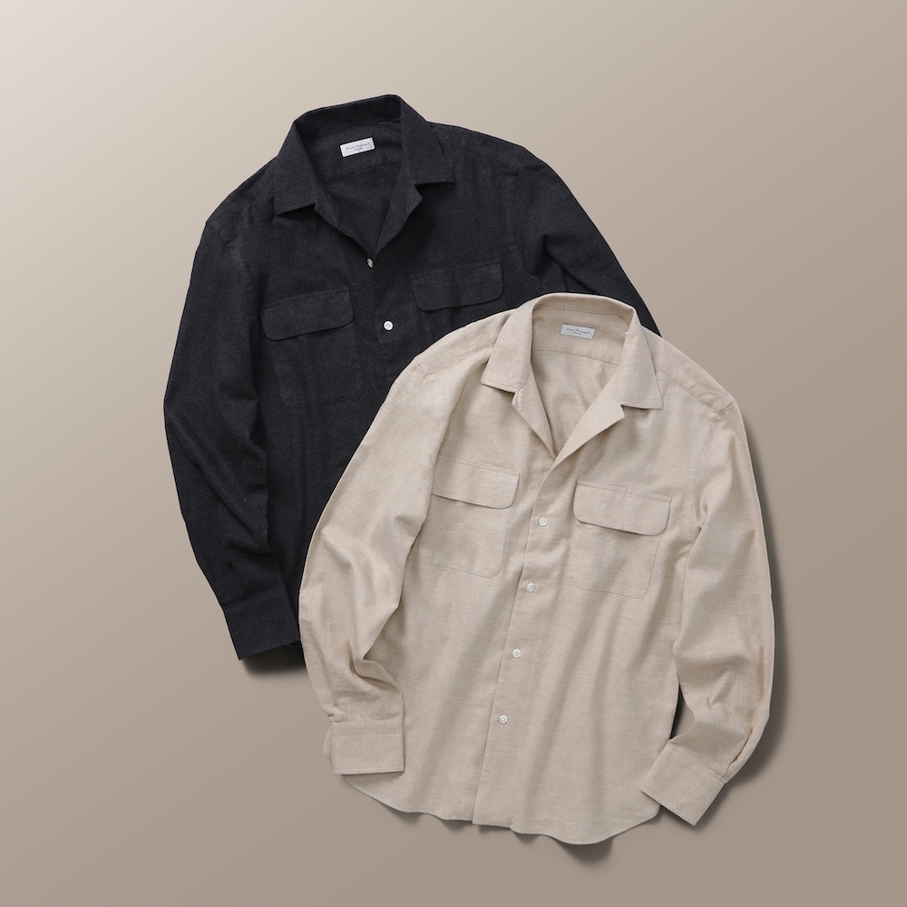 フィナモレ / コットンフランネル カッタウェイカラー シャツ/A5061