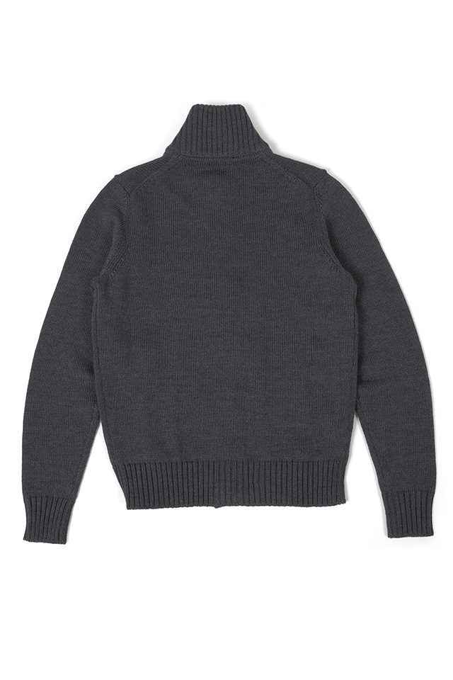 ブルゾンタイプのニットならではなレイヤードでの着用にも対応し、アウトポケットがあるので比較的暖かい日はアウターとして、また寒い時期にはアウターのインナーとして汎用性のある1着。