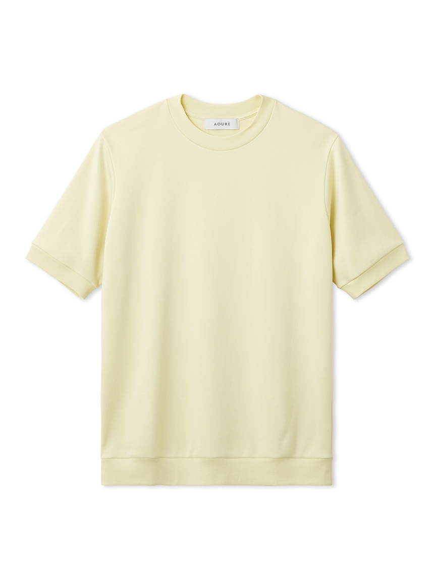 包み込まれるような柔らかさをもった半袖Tシャツ。裾と袖口をリブデザインにして、リラックスさの中にもスッキリとした印象で着れるように工夫しています。適度にリラックスさを感じるサイジングに設計。細めから少し緩めのボトムまで合わせることができる嬉しい一枚となっています。縫製も直接肌にあたる内側の縫代を極力なくす特殊なテクニックを入れ、こだわり抜いたTシャツになっています。普通のTシャツとは一線を画す上品な顔をもったデイリーに着れる一枚となります。