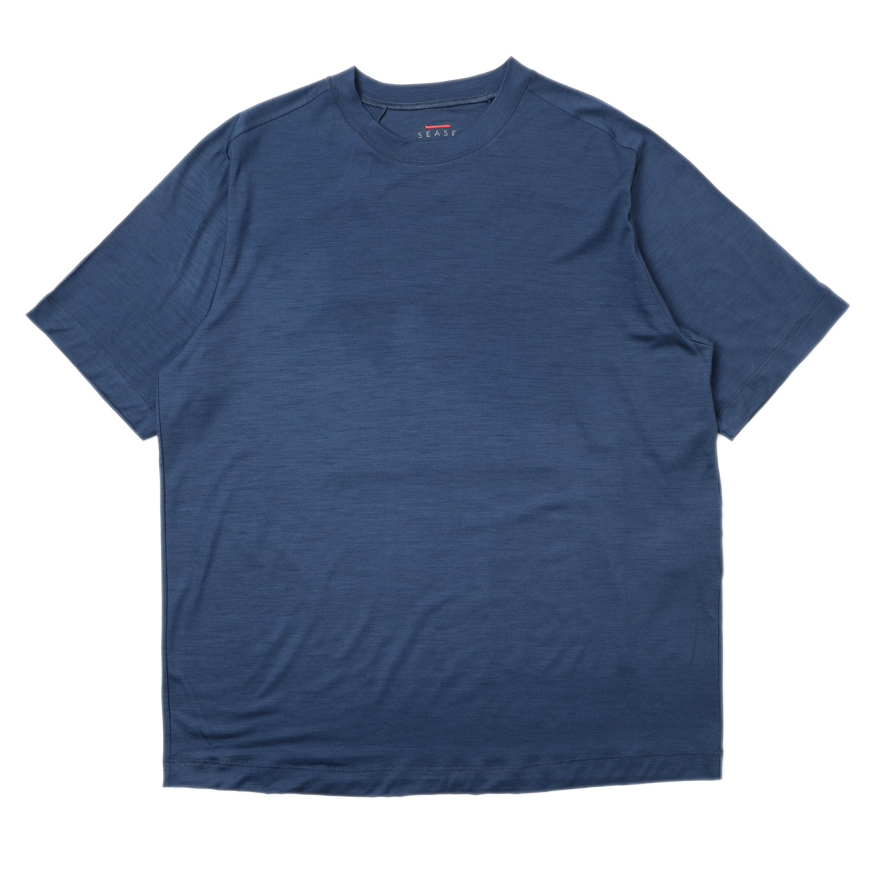 こちらは春夏らしいシンプルかつ爽やかなスタイリング。トップスはジャストフィットのクルーネックニット1枚でも、ボトムズに余裕あるシルエットをもってくると一気に鮮度が上がります。ここでストレートなグレスラや、デニムを合わせたりでは、こうはいきませんよね。