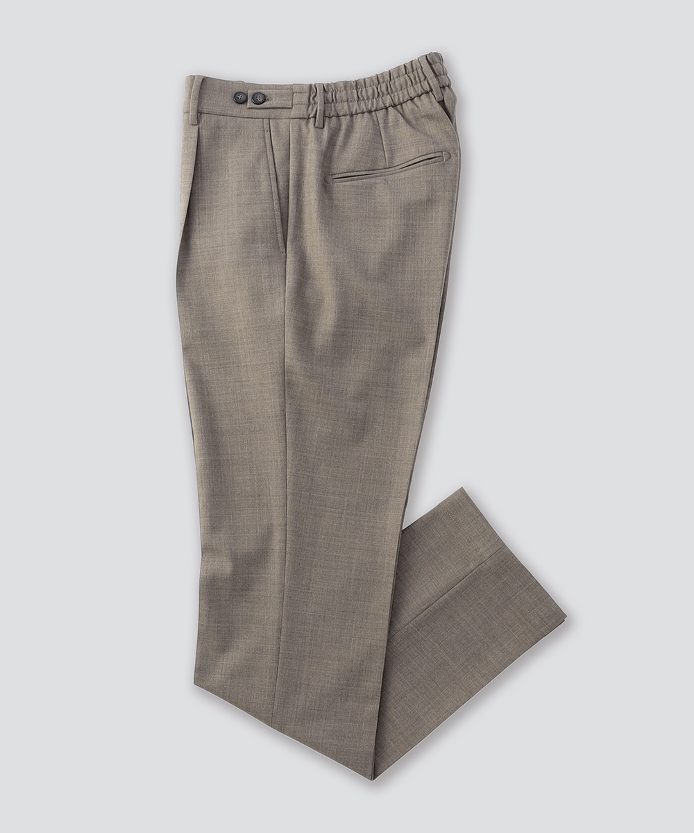 腰回りにはシャーリング加工を施し、1プリーツが入ることで適度なリラックス感を演出。
