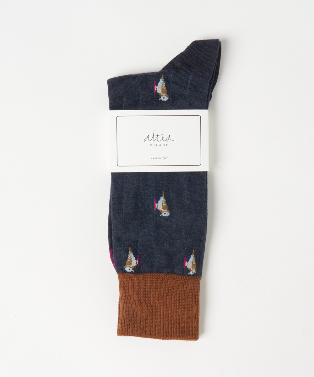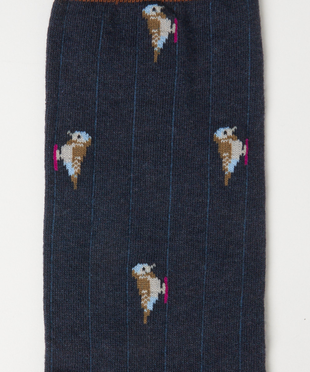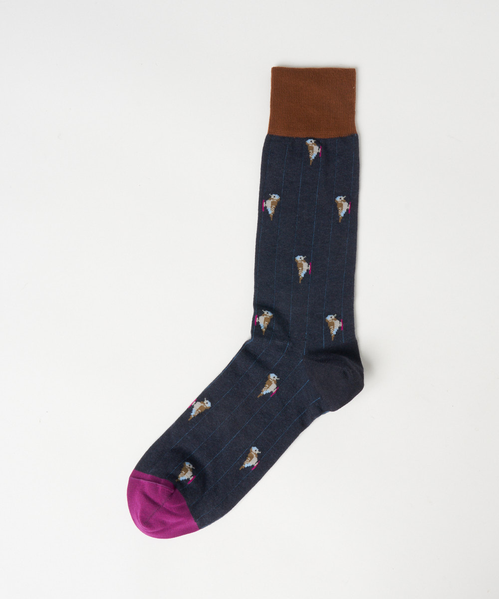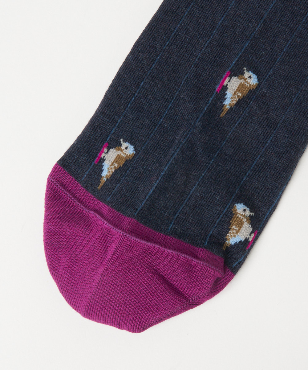 カラフルな鳥のモチーフが目を引くデザイン。鮮やかな色使いでありながらも、全体のトーンを抑えることで派手すぎず、大人のスタイリングにも自然と馴染みます。シンプルなコーディネートのアクセントとして取り入れることで、足元に程よい遊び心と華やかさをプラス。