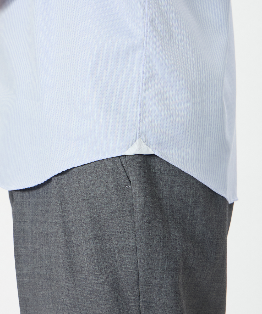ボディは程よくリラックス感があり、着丈はタックアウトした際もバランス良く見えるよう計算された仕上がりです。