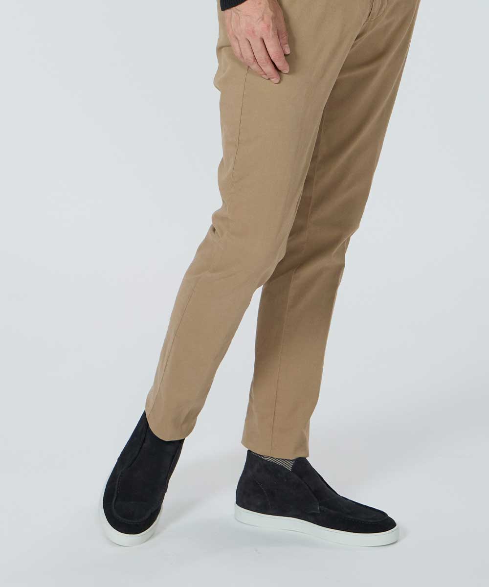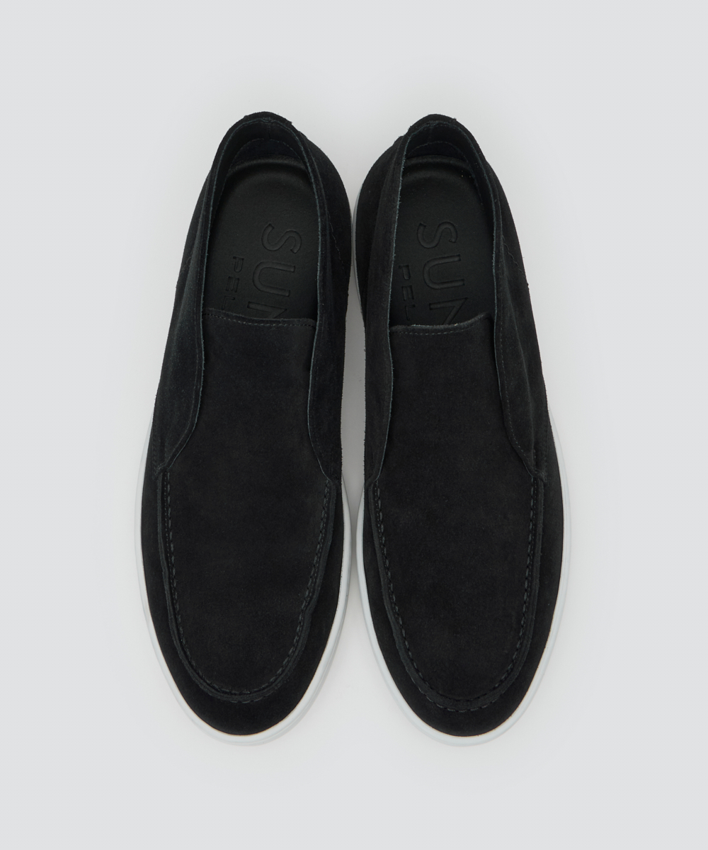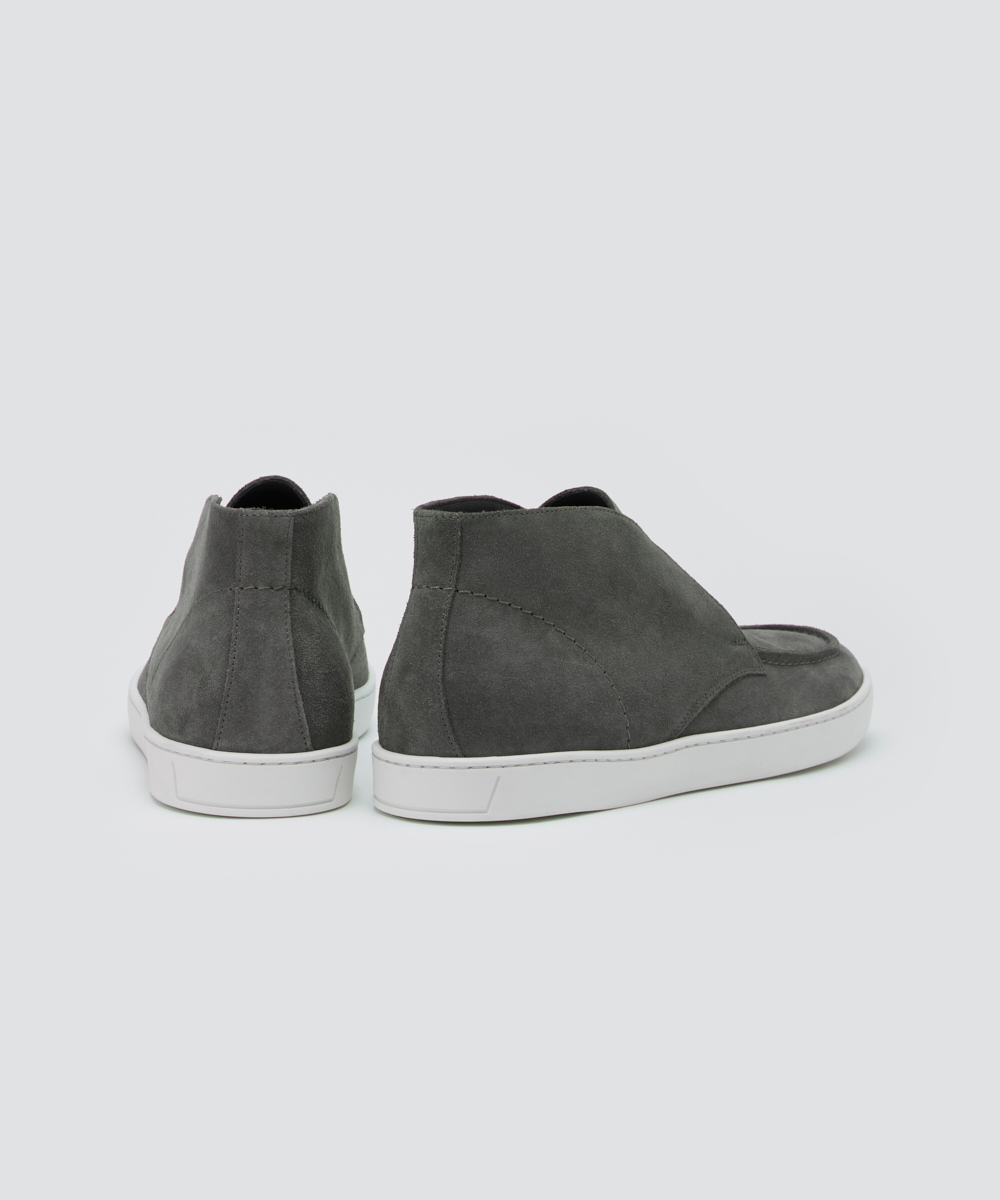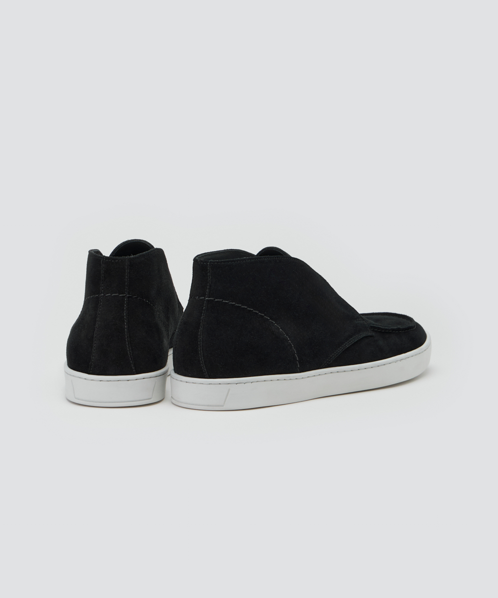 上質な素材と仕立てで、短めの毛足が揃った滑らかな牛革スウェードを使用。薄手ながらコシがあり、履き始めから柔らかく馴染みます。ソールは約2cm厚でクッション性が高く、疲れにくく快適。軽やかさと上品な華やかさを両立しています。ハイカットデザインで、クラシカルかつ現代的な印象に。足元に上品なアクセントを添え、コーディネートを格上げします。