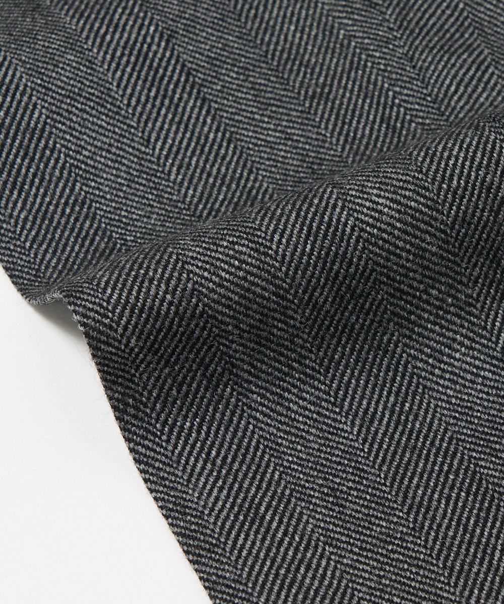ヘリンボーン特有の奥行きのある表情は、無地とは一線を画す存在感を演出。