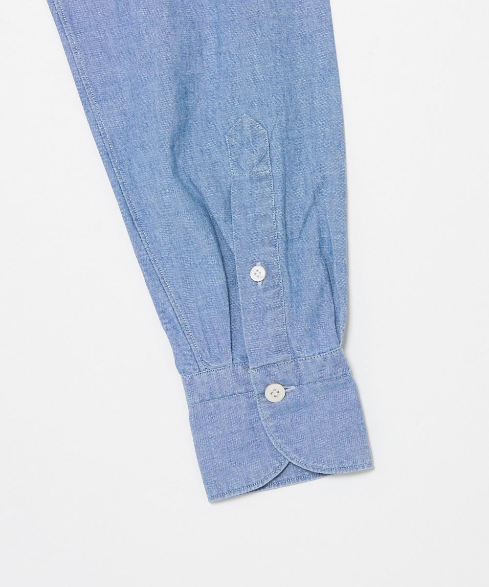 年間を通して着用できるコットンシャンブレー生地を採用。