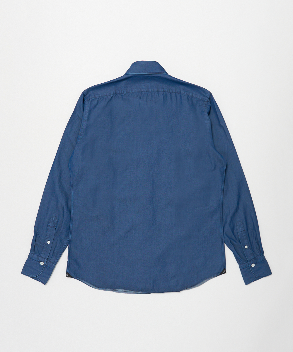 過度に主張しない色合いと、縦方向に美しく入るデニムの陰影が、シャツスタイルに奥行きをプラス。