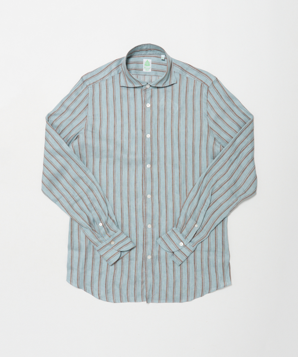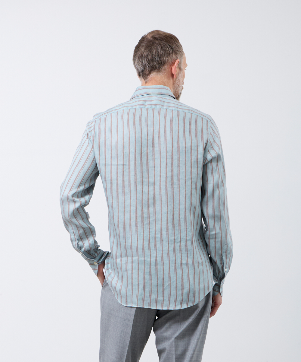 夏には欠かせないリネンファブリックを採用。リネンならではの高い通気性と吸湿性により、熱がこもりにくく、快適な着心地を保ちます。さらに、リネン特有のさりげないシワ感が生み出す表情に、ストライプ柄が縦のラインを強調し、軽やかさの中に程よいメリハリをプラス。無地にはない表情が、シンプルな装いでも奥行きのあるスタイリングを完成させます。
