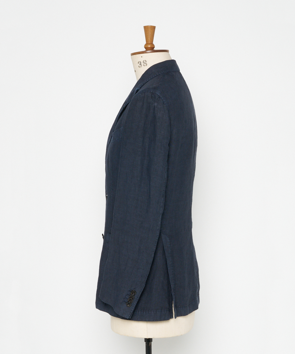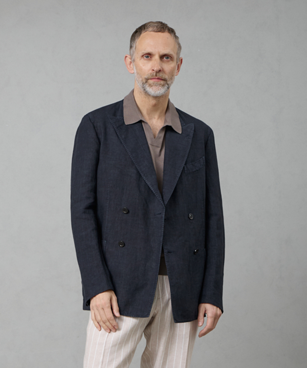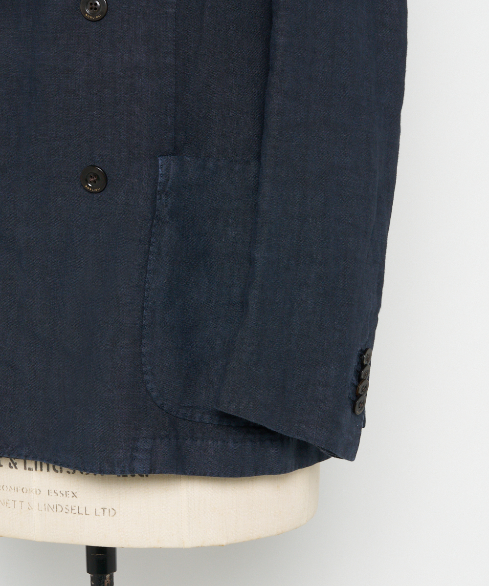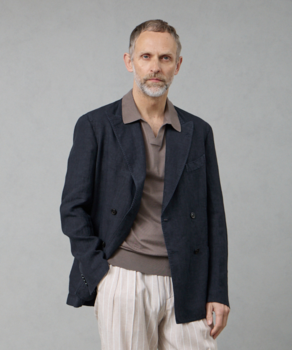 リネン100%の生地にガーメントダイを施し、春夏らしい軽やかな表情に。4B仕様のダブルジャケットでありながら、かしこまりすぎることなく、程よくカジュアルダウンした雰囲気のある一着に仕上げています。スラックスやデニムなど、幅広いスタイリングに取り入れやすいのもポイント。この春夏のコーディネートの幅を広げてくれます。