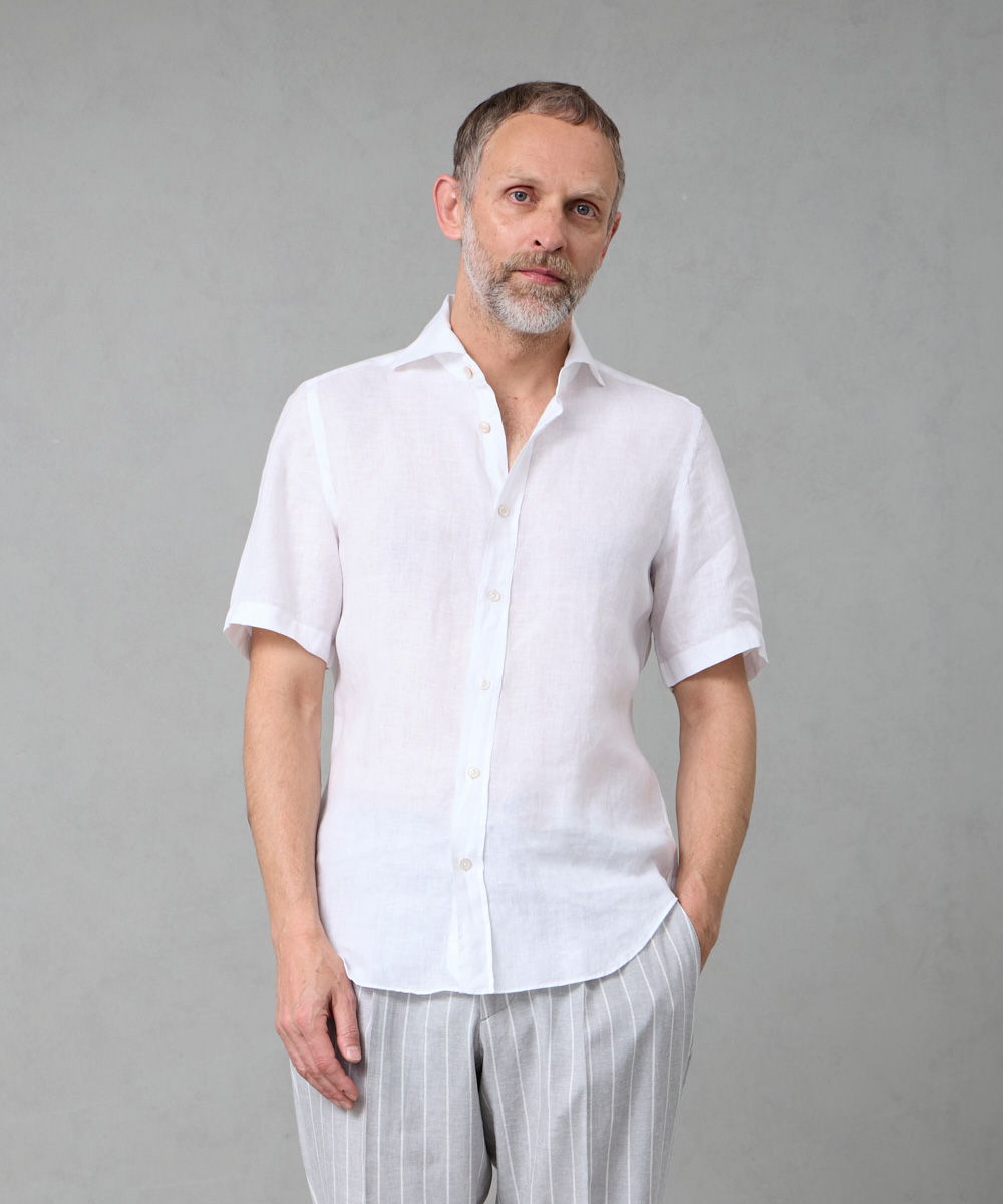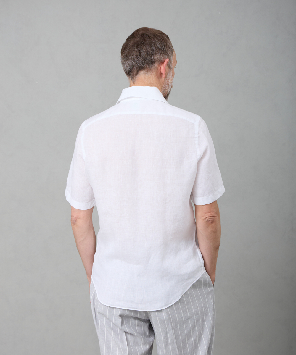 定番モデル「BALI(バリィ)」をベースに、着丈を約5cm短く設定した半袖シャツ。バランスの取れたシルエットで、一枚でも様になる仕上がりです。目の細かいステッチワークなど、細部にまで丁寧に作り込まれており、シンプルながらも味わいを感じさせる一着。上質さが自然と伝わる、Finamoreらしいシャツに仕上がっています。
