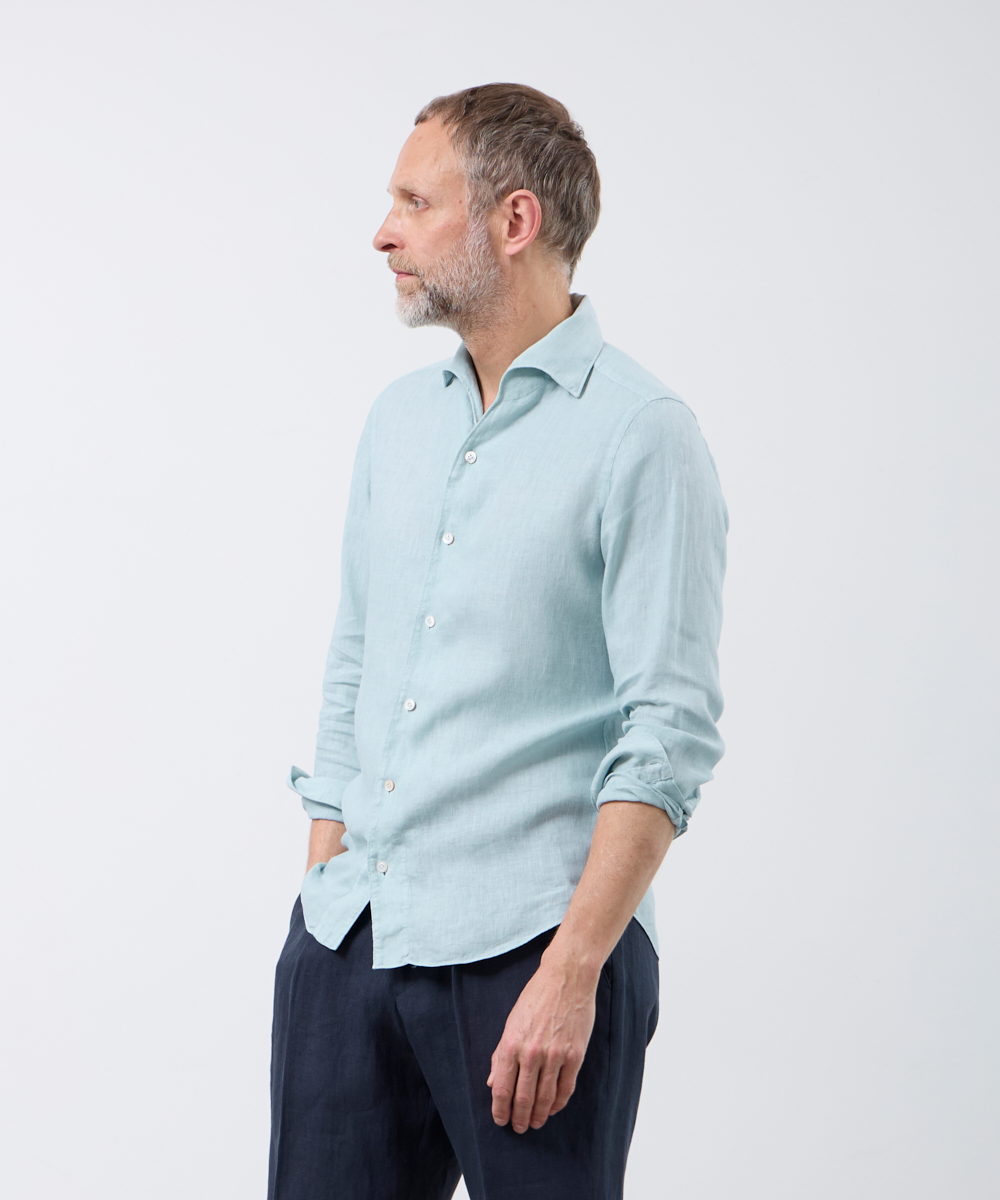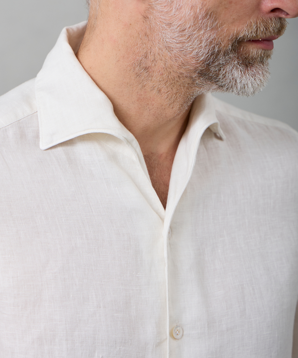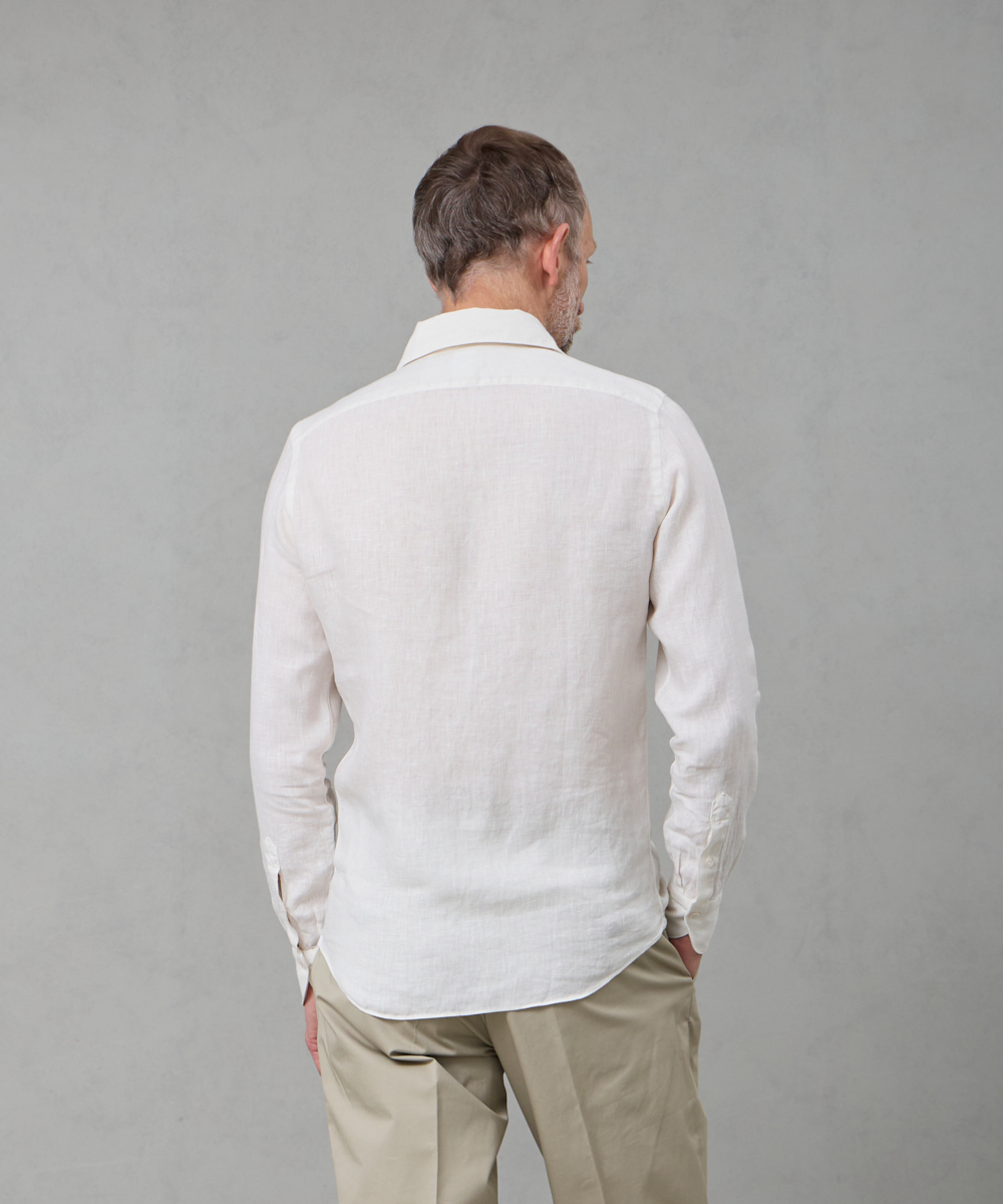 夏には欠かせないリネンファブリックを採用。リネンならではの高い通気性と吸湿性により、熱がこもりにくく、快適な着心地を保ちます。リネン特有のさりげないシワ感が生み出す表情は、かっちりしすぎない抜け感を演出。着込むほどに柔らかさが増し、身体に馴染むリネンの経年変化は、大人のカジュアルスタイルにさりげない品格をもたらします。カラーは、イタリアならではのペールカラーを採用。主張しすぎず、それでいて確かな存在感を放つ色味です。