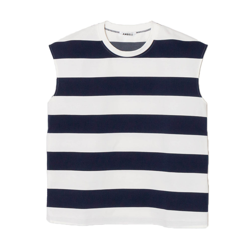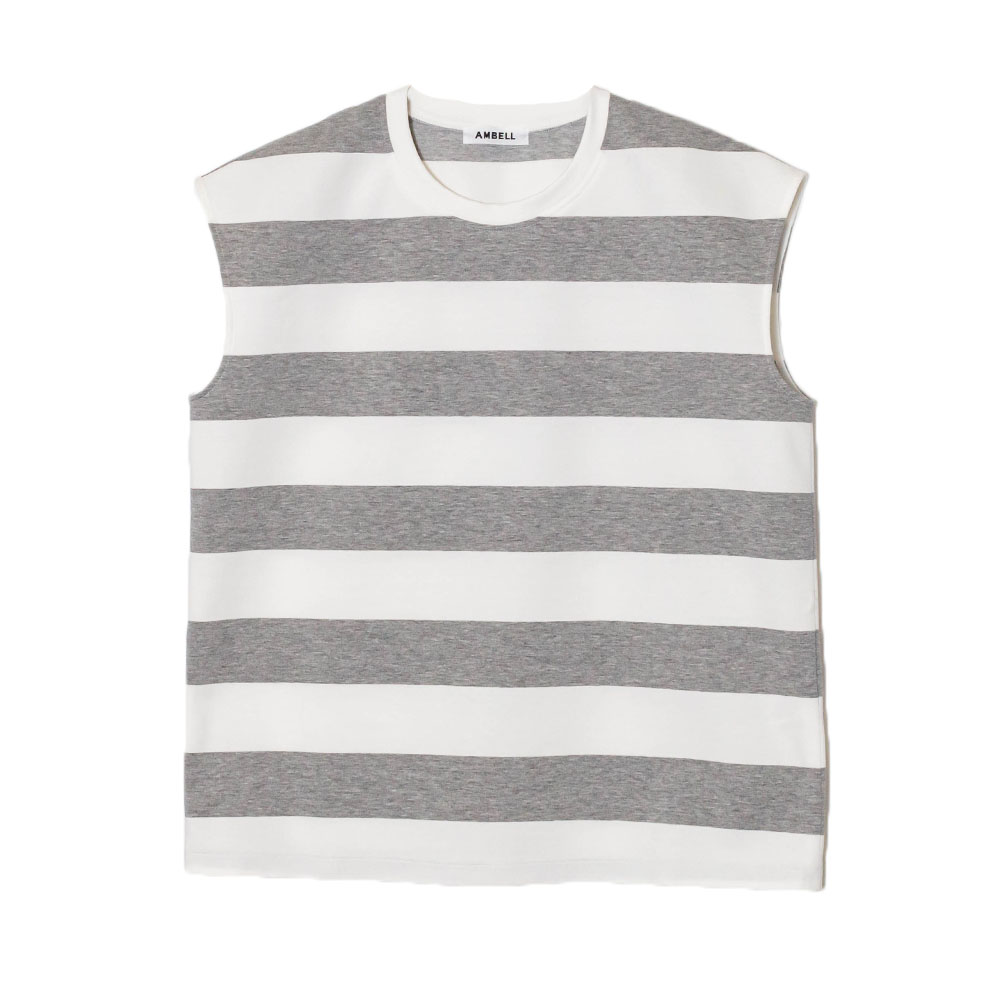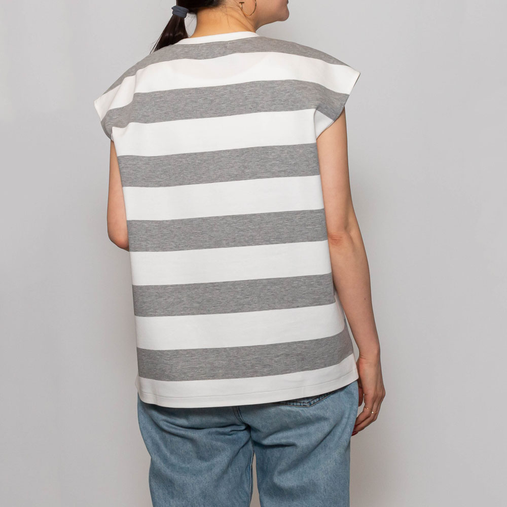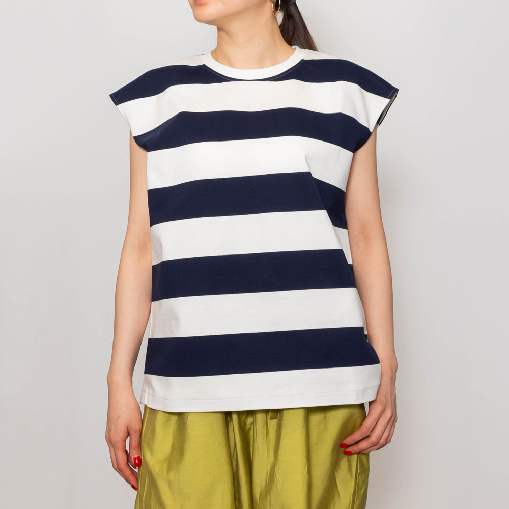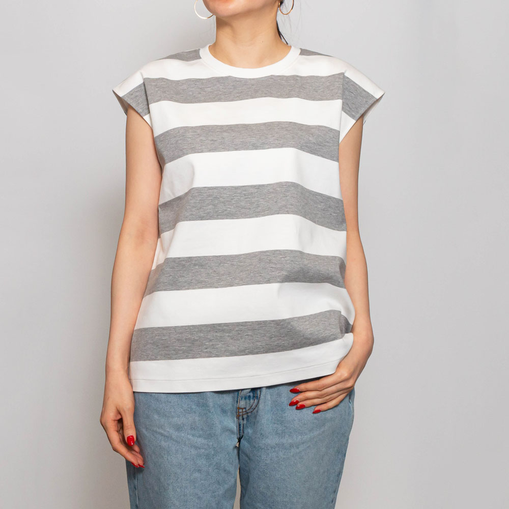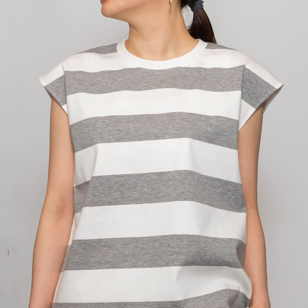 ピッチの太いストライプが印象的なフレンチスリーブのカットソー。