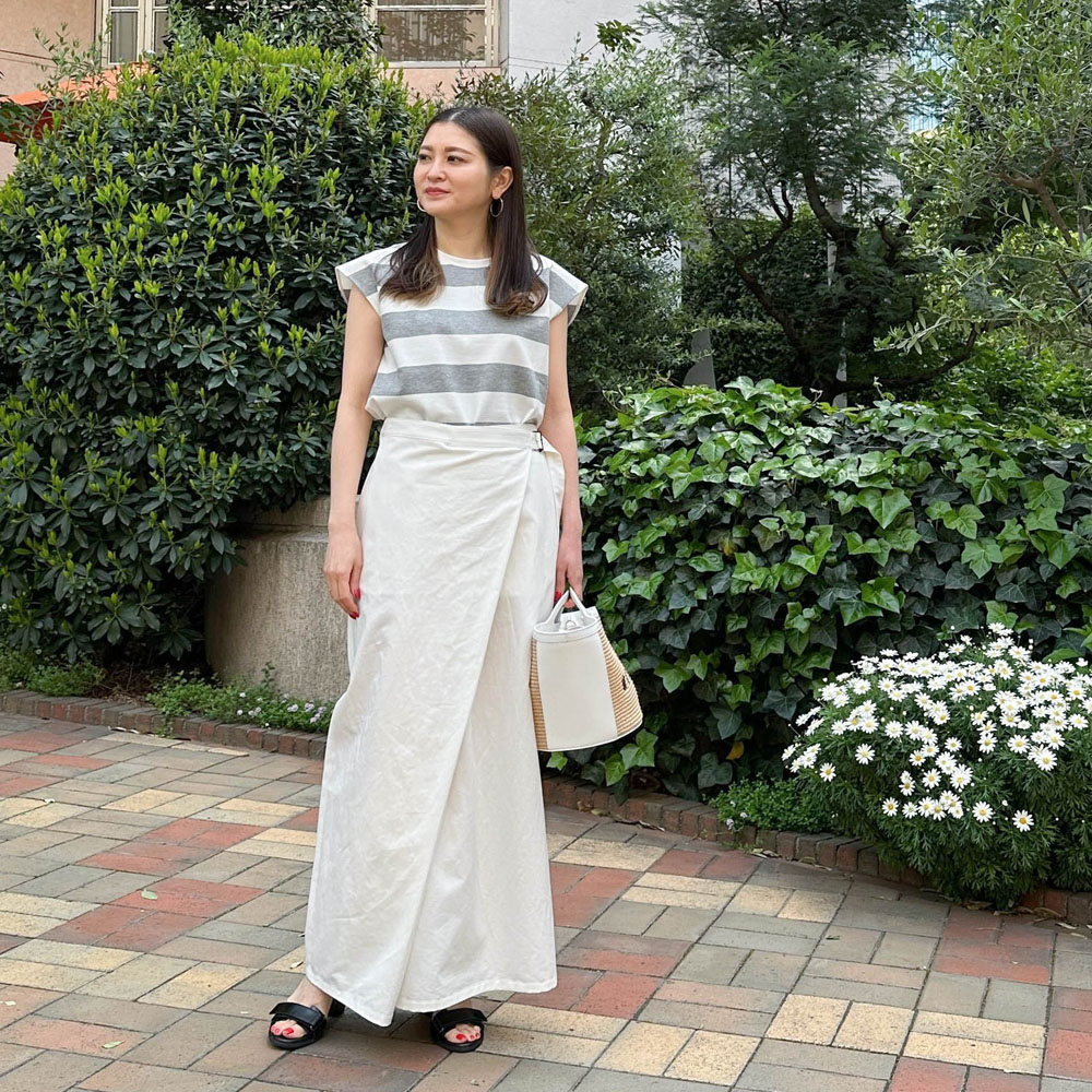 太いピッチのストライプはこの太さにこだわり生地を探し見つけたもので、カジュアルな雰囲気を良い感じに抑えて個性を際立たせます。