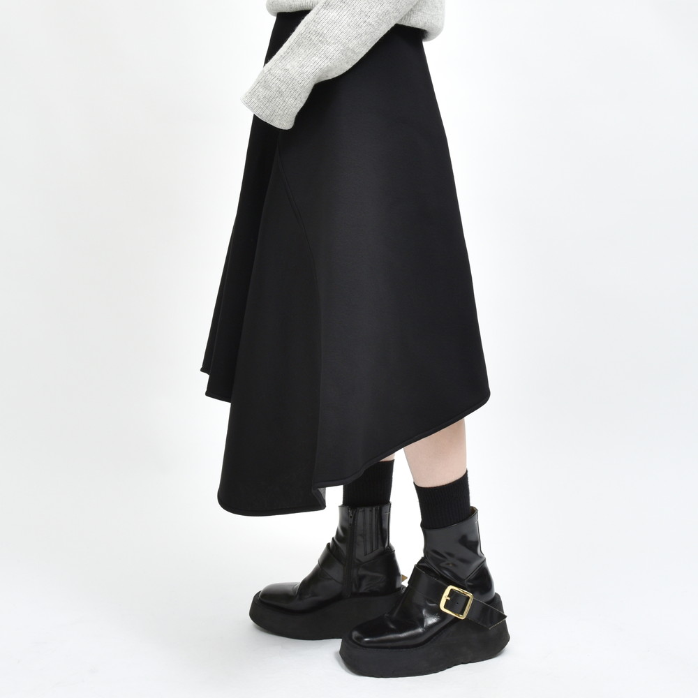 スポーティーなスキューバ生地を用いることでエレガントなデザインにカジュアルなニュアンスを加え、普段使いしやすいアイテムに仕上げています。