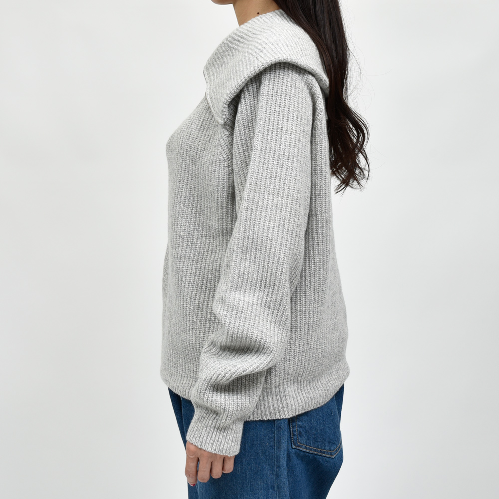 ふんわりと包み込む柔らかさと、大きな衿が印象的な一着です。
