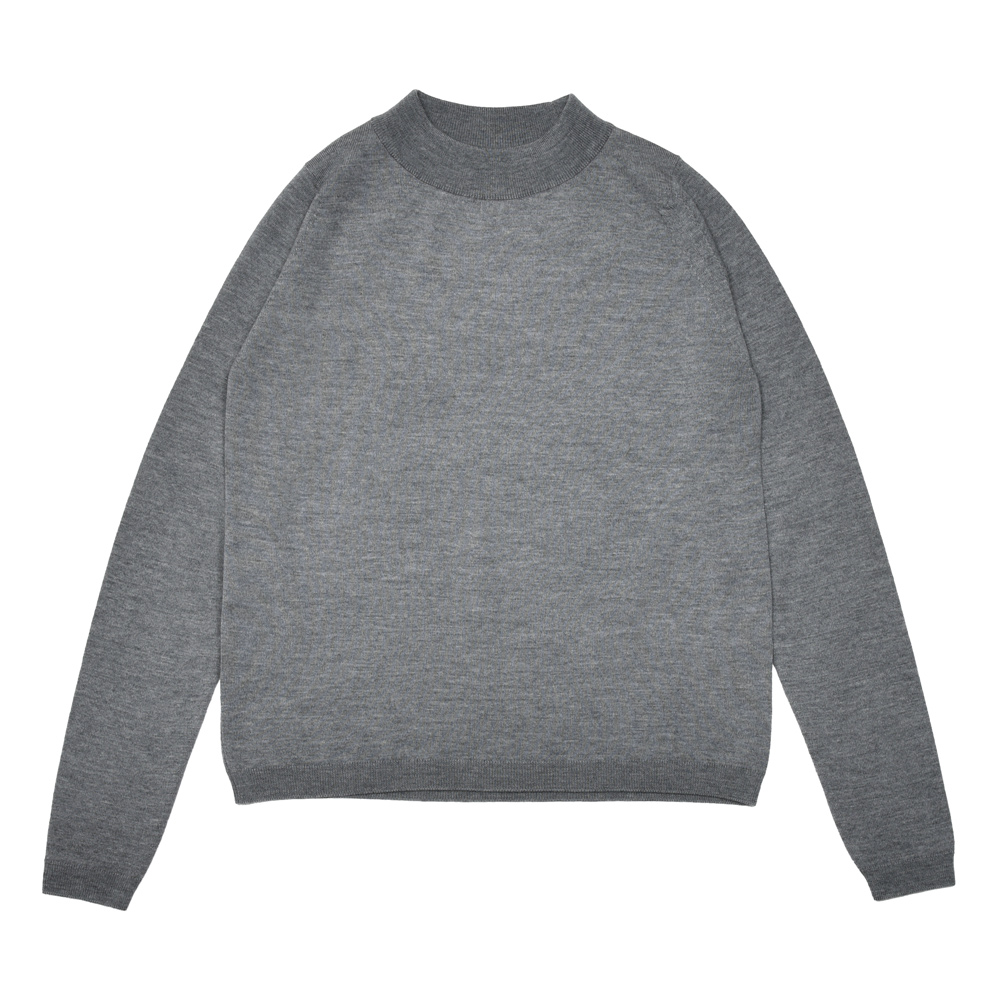 厚地の24ゲージニットで仕立てた、暖かみと上質さを兼ね備えたモックネックニット。