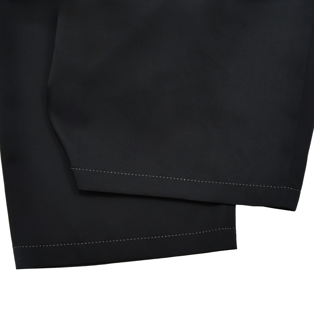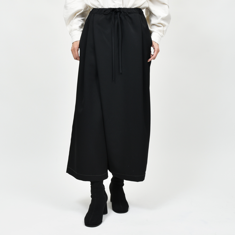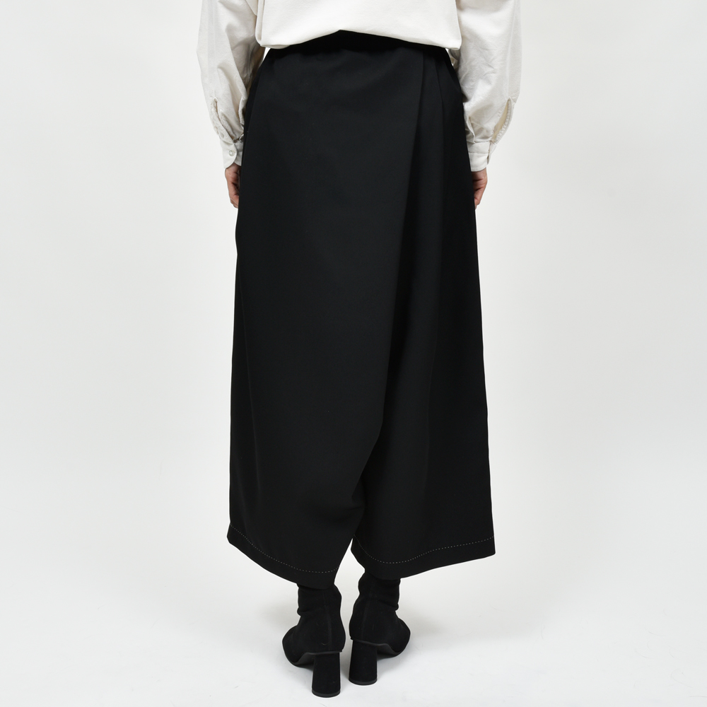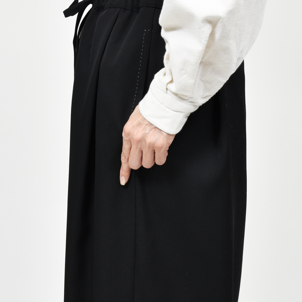 遊び心あふれるシルエットが魅力のウールパンツ。