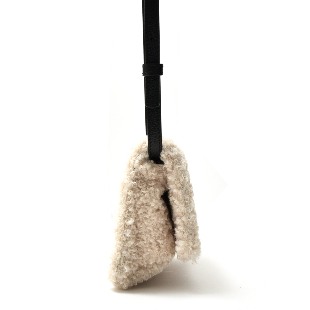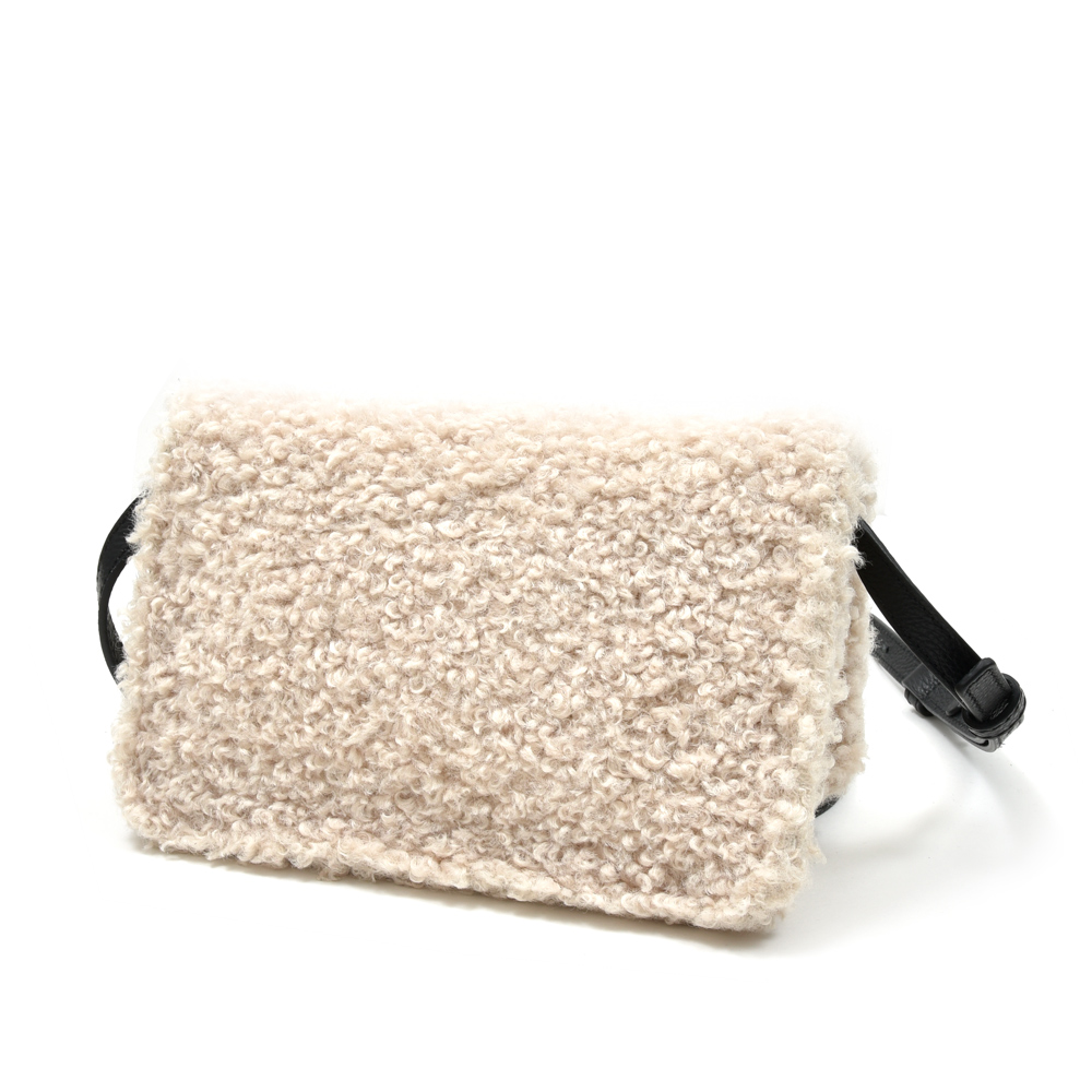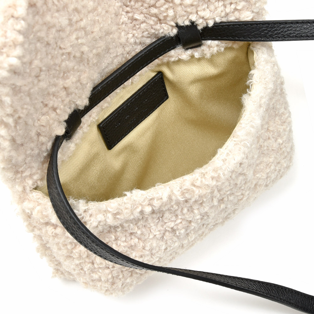 柔らかなボア素材と上質なレザーを組み合わせたミニショルダーバッグ。