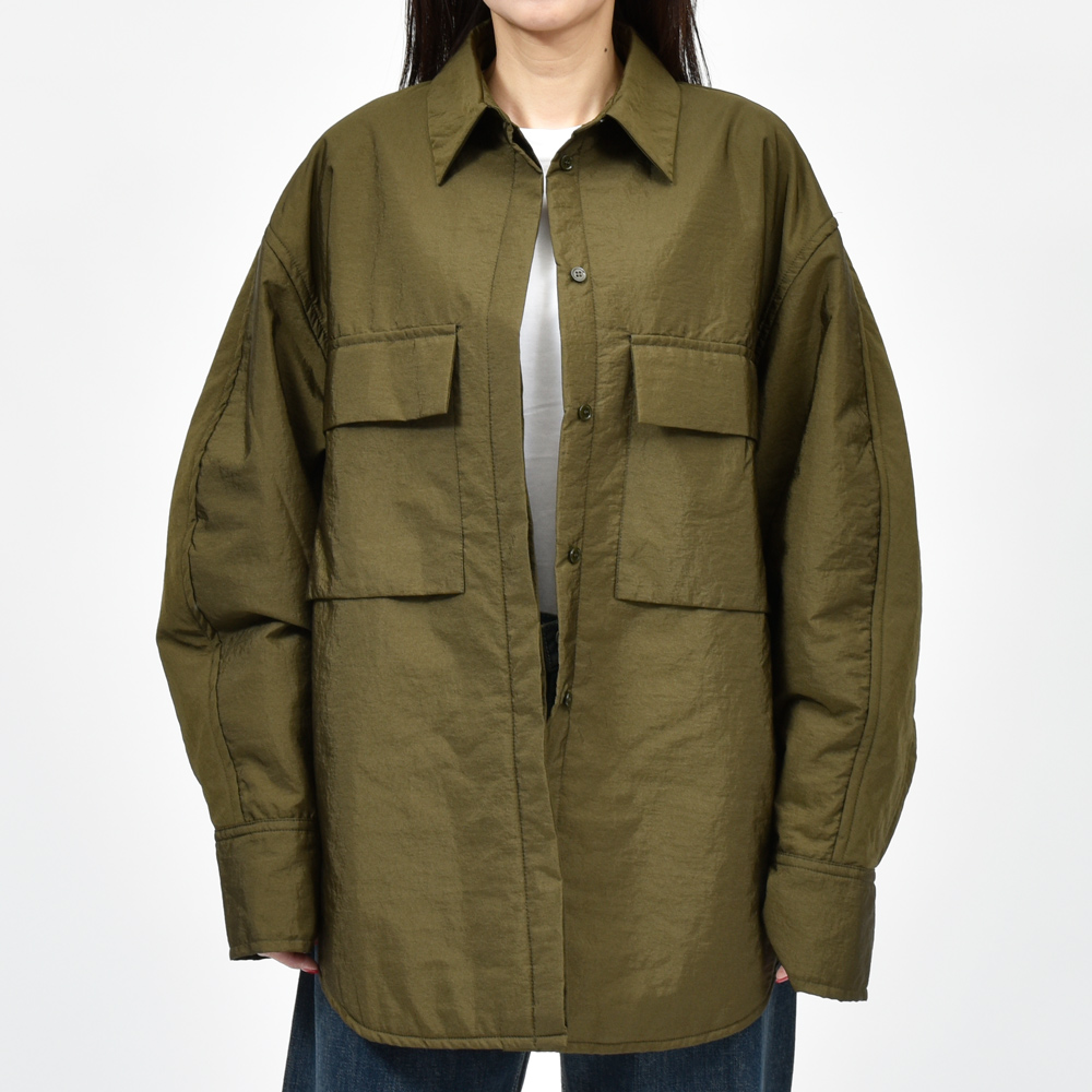 軽やかなナイロン素材に中綿を詰めた質感のあるパデッドナイロンシャツ。