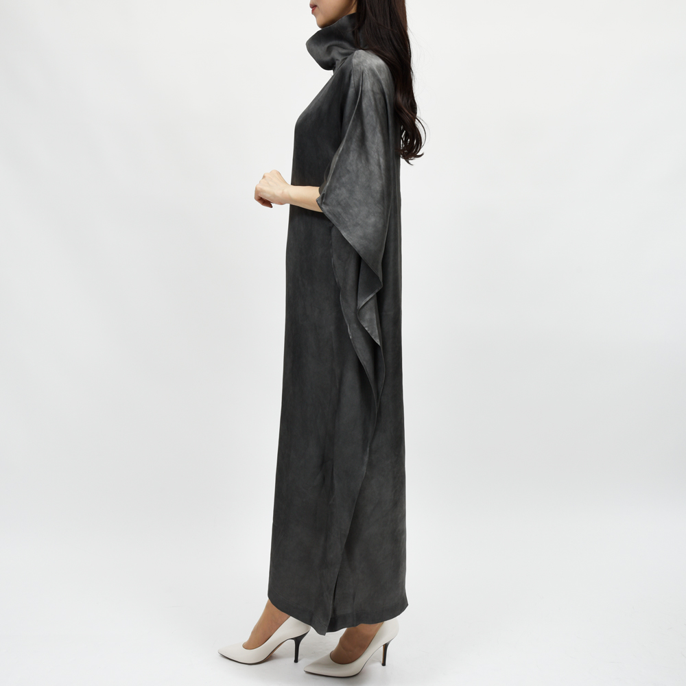 流れるようなシルエットが印象的な、アシンメトリーデザインのカフタンドレス。