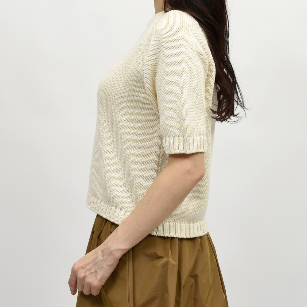無駄を削ぎ落とした美しいラインで、コンパクトでありながら締め付け感のないニットになっています。