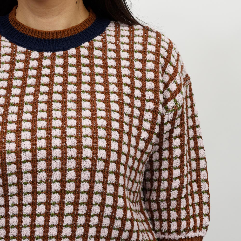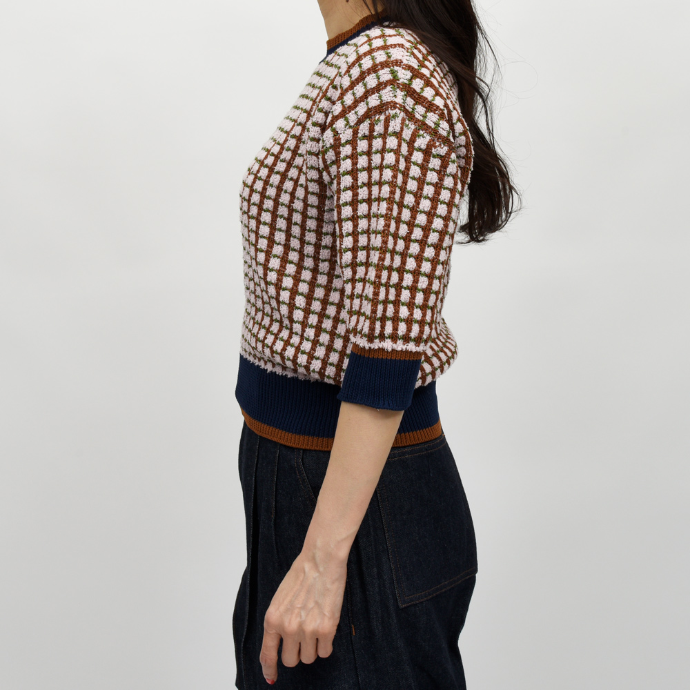 柔らかな風合いが魅力のパイルクルーネックニット。