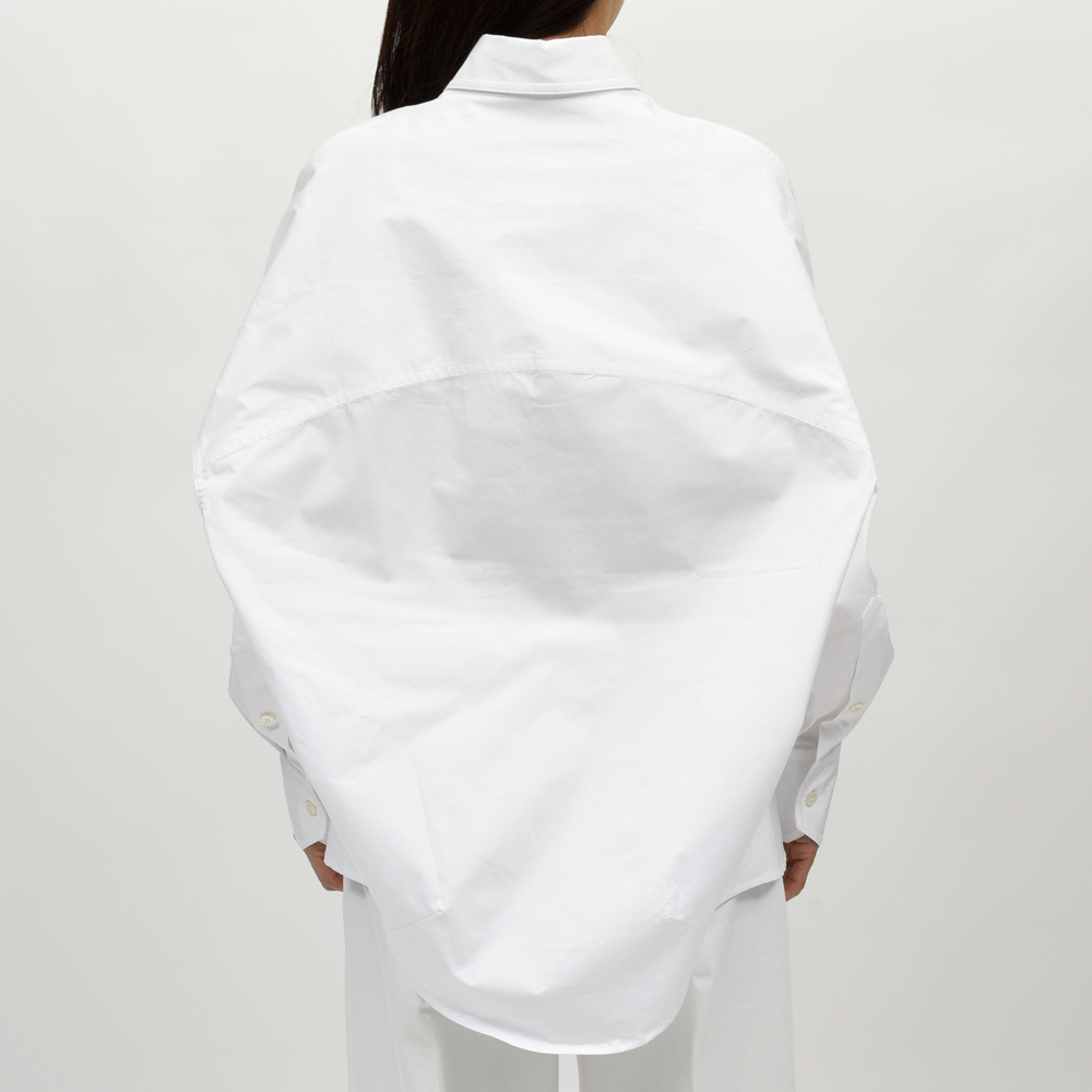 シンプルなシャツながらも、動きのあるシルエットに仕上がっています。