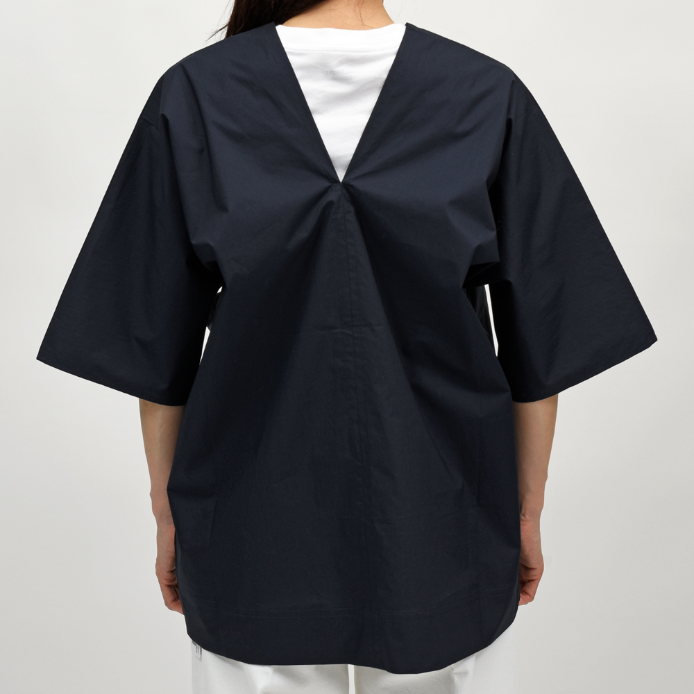 身幅はゆとりを持たせたシルエットになっており、直線的なパターンでラックス感のあるフォルムに仕上がっています。