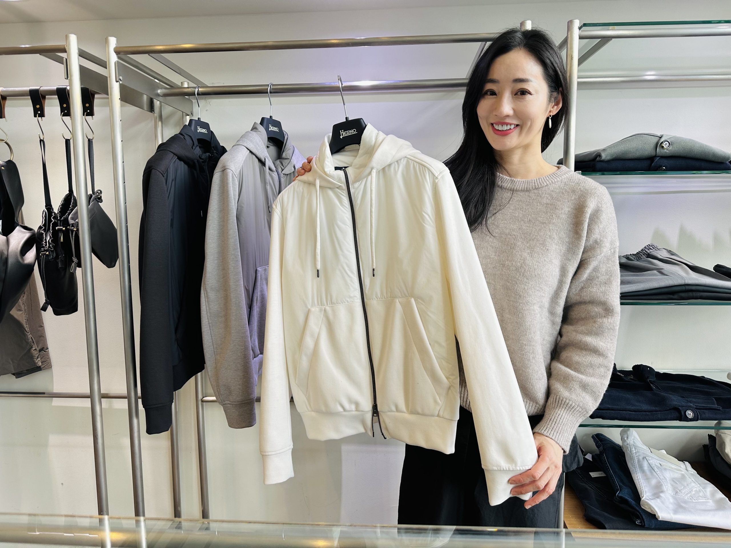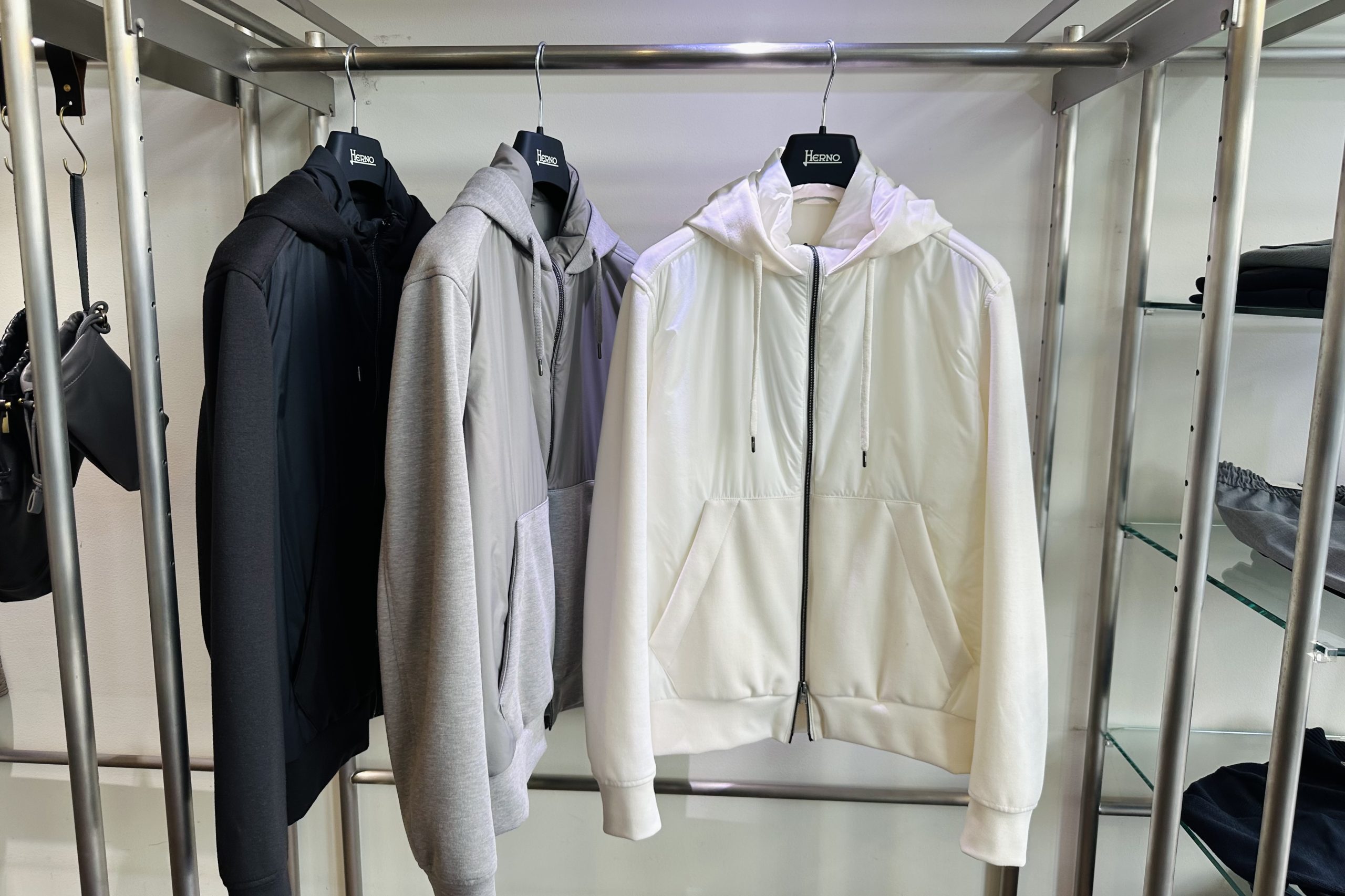 今日ご紹介するのはHERNOの新作、大人カジュアルスタイルにぴったりなジップアップパーカー。
