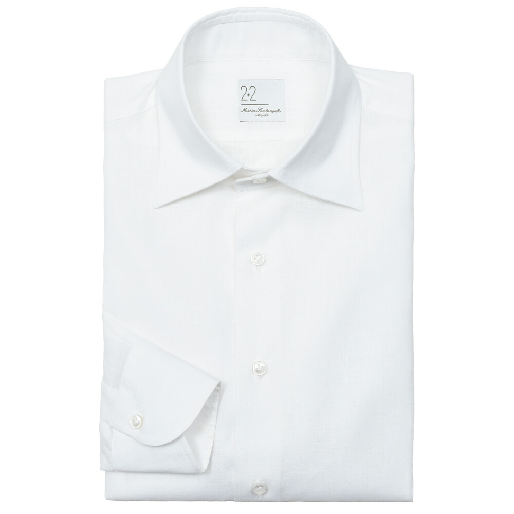 ストライプの色柄はもちろんですが、サイズ感や襟型も選びの決め手となるものです。クラシックなシャツだと裾が長すぎたり、ネクタイをしないことで襟元が開きすぎたりしてしまいますので。おすすめはタイドアップもノータイもキマるワンピースカラー。マリア・サンタンジェロのようなナポリのカミチェリアが得意とする襟型です。