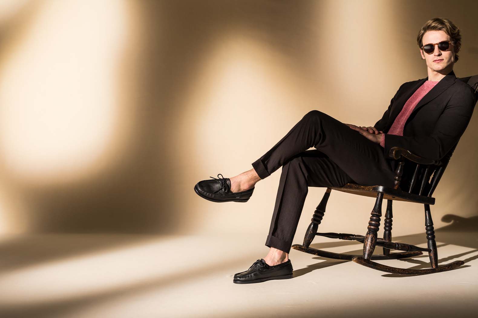 ・端正なフォルムとともに都会で履くに相応しいルックスとなっている理由は、ソール、シューレース、ステッチがトーンオントーンに纏められているから。さらにゴールドのハトメパーツによってラグジュアリーなムードすら醸します。