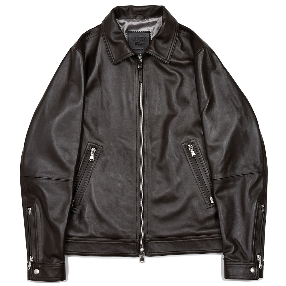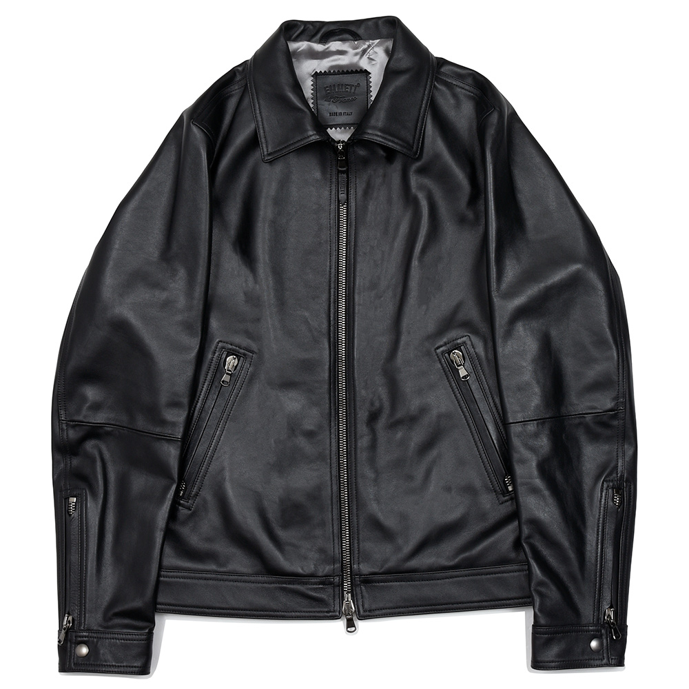 ・素材はラグジュアリー感ある"ナッパシルク"。人気モデル"JURI(ユリ)"に採用されることの多い、ロウ引きナッパレザー(0.7ミリ)と比較すると0.5ミリ厚と薄く、軽い着感で室内で着ていても違和感がなく、オールシーズン着用可能。パーカータイプの"JAYDON(ジェイドン)"との相性はピッタリです。