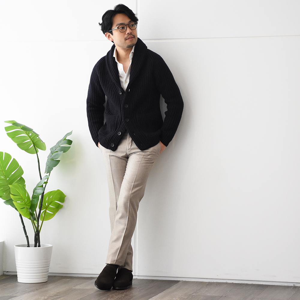 レンズ周りはほんのり丸みのある形なので、セルフレームでありながら柔らかさのある顔周りを作ってくれるこちらのアイウェア。知的な印象に見せてくれるなと感じました。また、フレームにほんのり透け感があり、軽やかな雰囲気に仕上がっております。