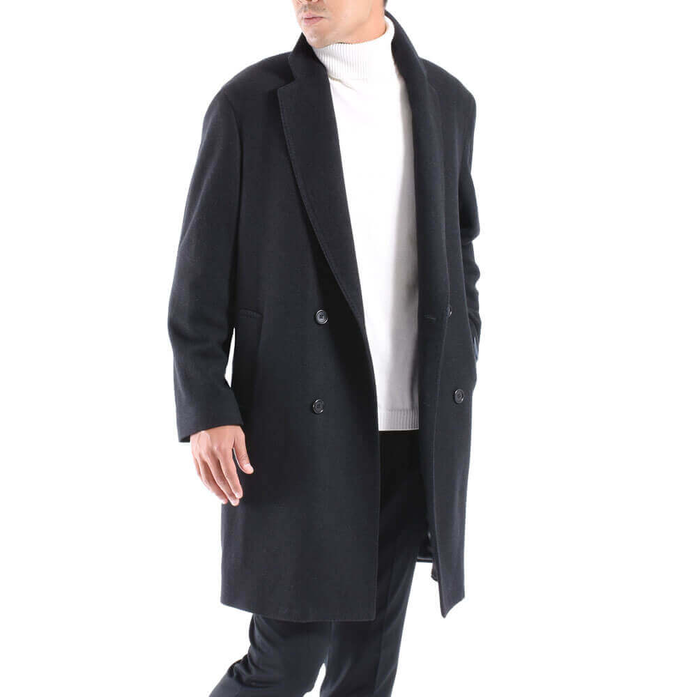 ・ダブルブレステッドながら抜け感のあるノッチドカラー、そして4つボタンというデザインが秀逸!さらに斜めに取り付けられた腰ポケット、筒袖という仕様によってカジュアル感がアップ。膝位置くらいまでをカバーする着丈によってエレガントな印象も漂います。ゆえにカジュアルからタイドアップスーツまでこなせる汎用性があるのです。