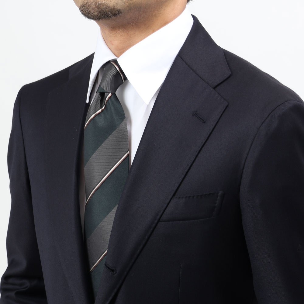 ・こちらは色の組み合わせが現代的なストライプタイ。派手さはないのにさりげなく存在感のあるVゾーンに。