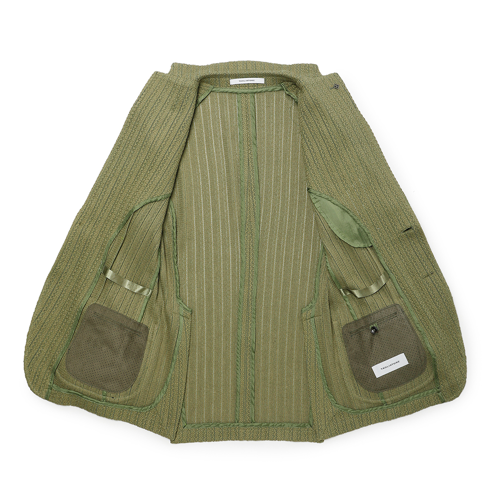 ・襟裏には表地の色を拾った超極細なコーデュロイを使用し、ディテールにも抜かりない仕上がり。