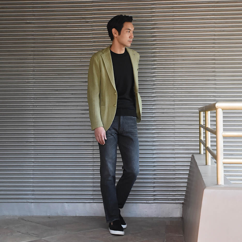 ・ジャケットならではの品の良さを保ちつつ、リラックス感も味わえるので場所問わずサッと羽織るだけでサマになります。
