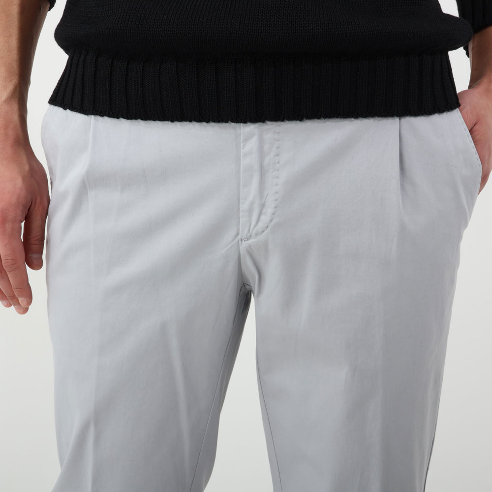 ・”FEDERICO”は、1アウトプリーツで適度にスッキリとしたテーパードシルエットを描く「GTA(ジーティーアー)」のスリムフィットモデル。サイドポケットはスラッシュ(斜め)になっており、プリーツやフロント持ち出しと相まってシャツなどをタックインすれば腰廻りにポイントが生まれ、ベルトレスでも違和感がありません。
