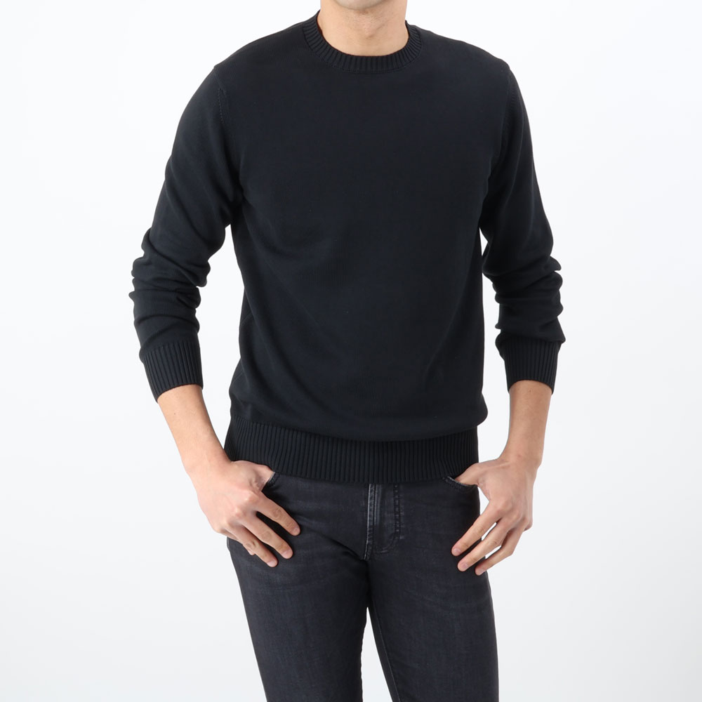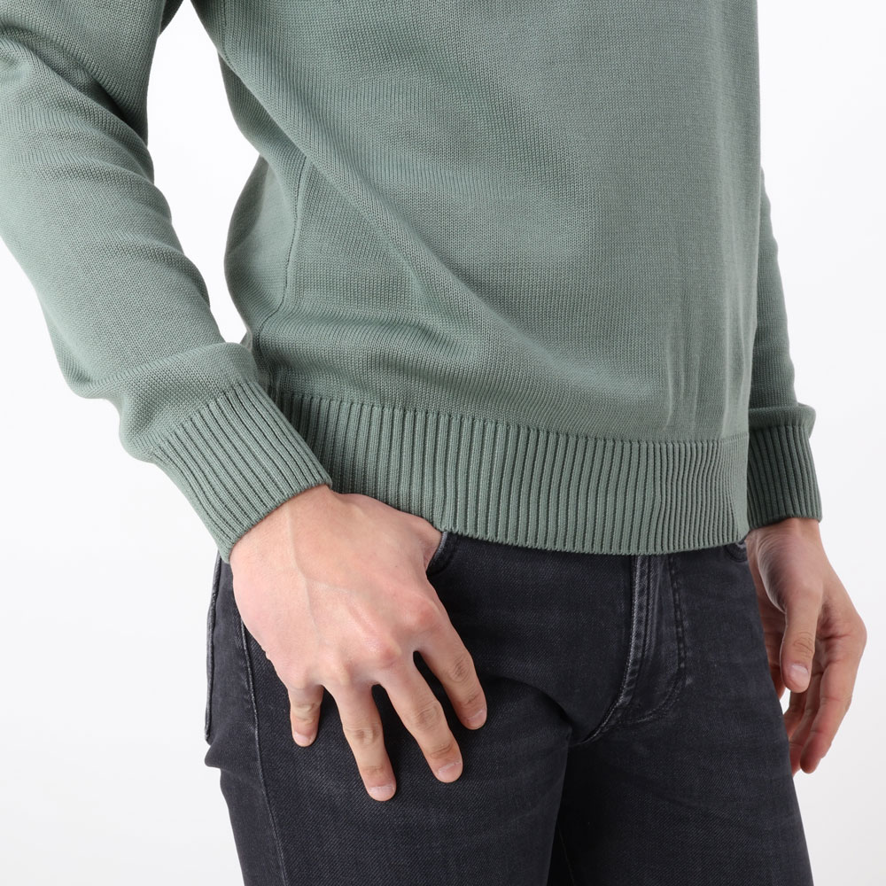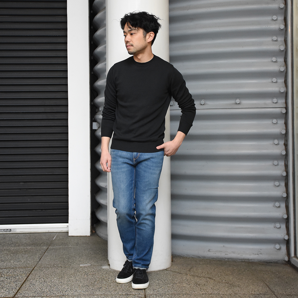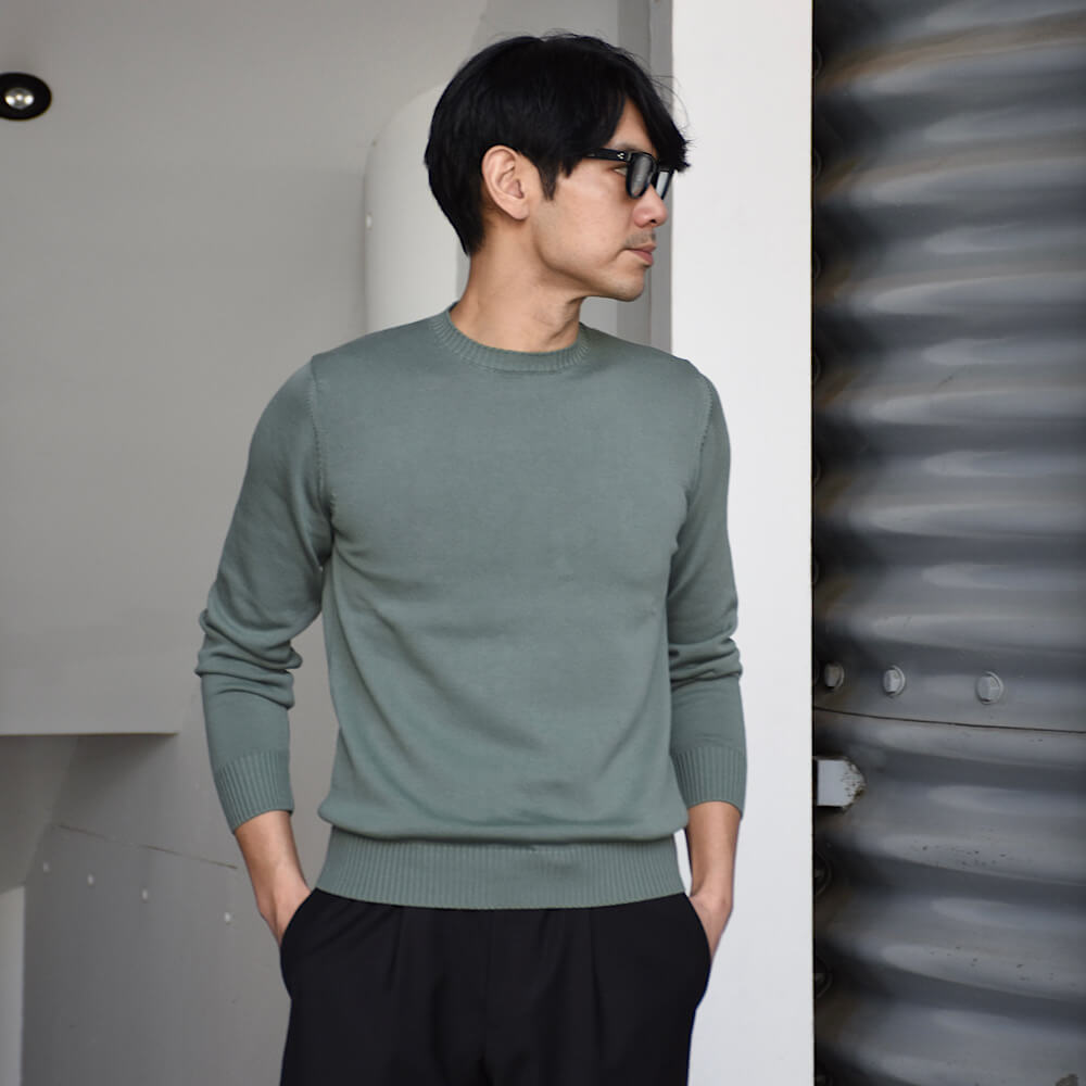 ・全くクセのないデザインと適度にゆとりのあるイタリアブランドらしく洗練されたシルエットによってコーディネートを選びません。またミドルゲージなので身体のラインを気にすることなく着られます。