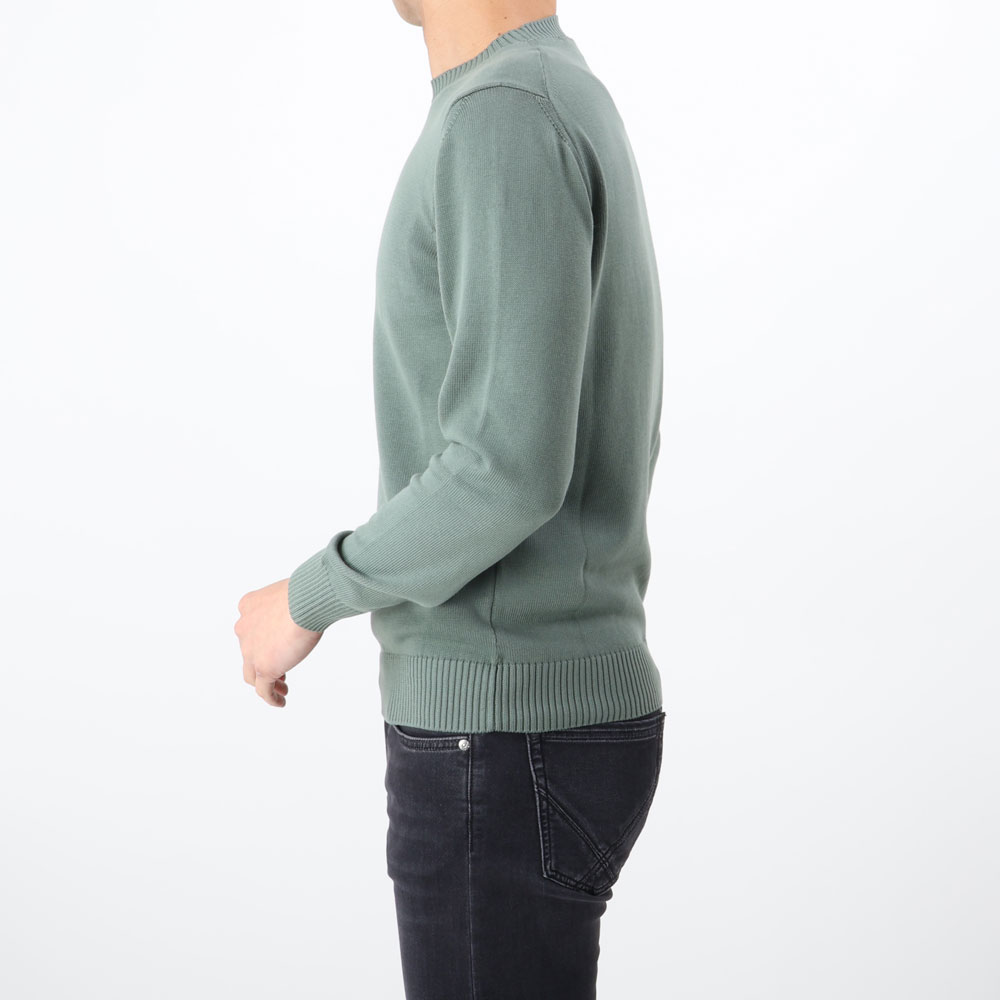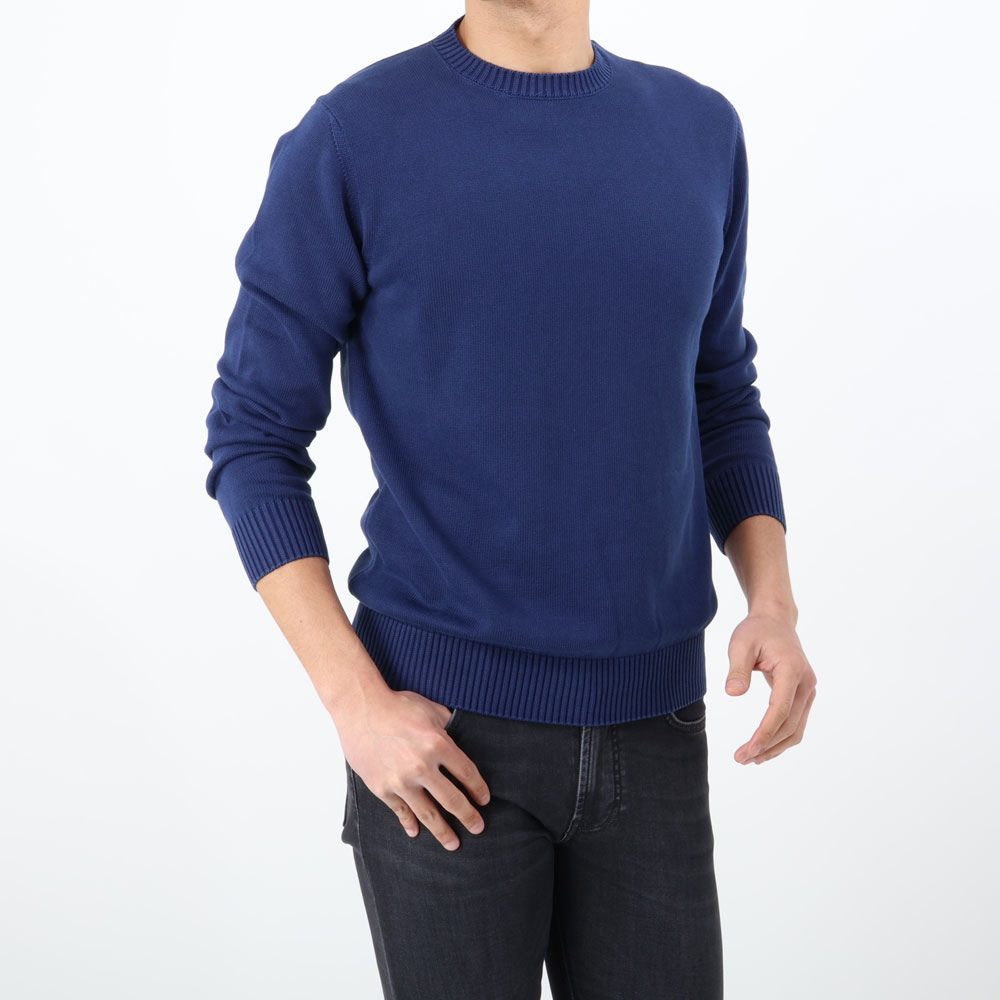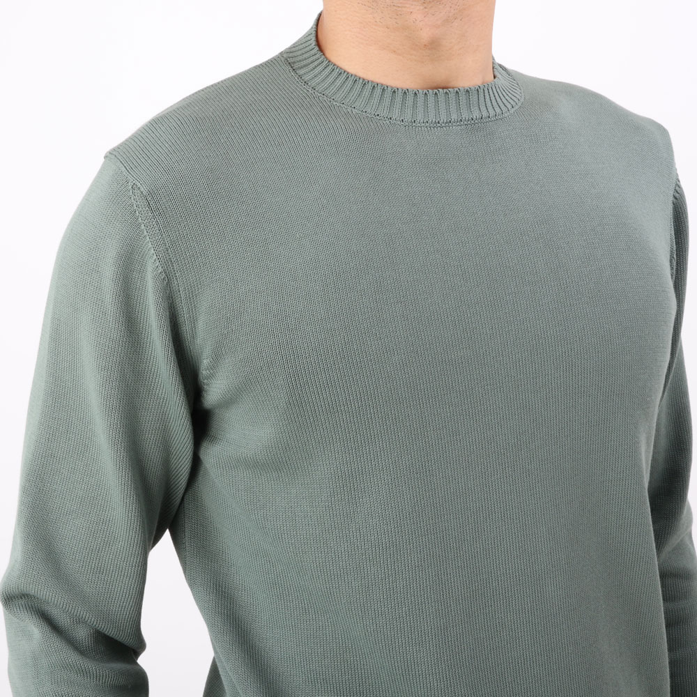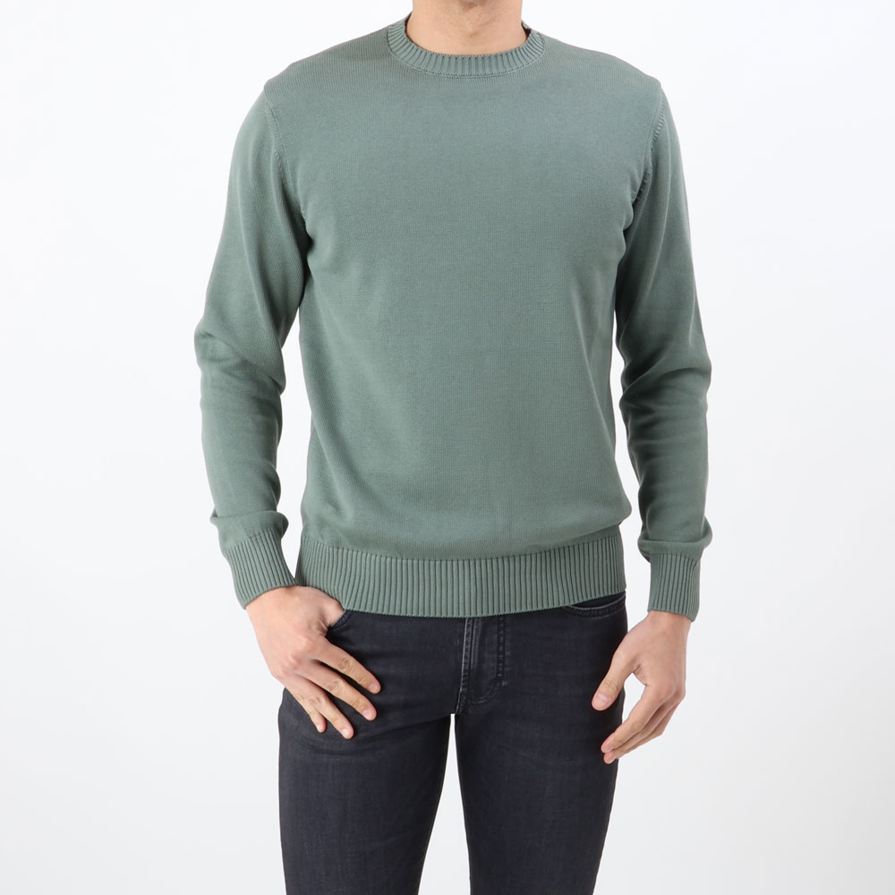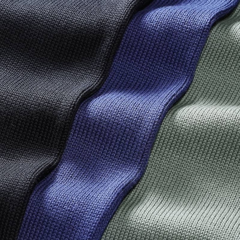 ・こちらはミドルゲージ(7ゲージ)のコットンニット。適度に甘い編み地でとても柔らかく素肌に着ても快適で、ガーメントダイによる少し着込んだようなこなれ感ある風合いも特徴です。