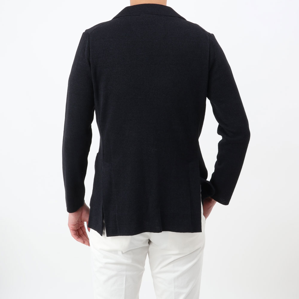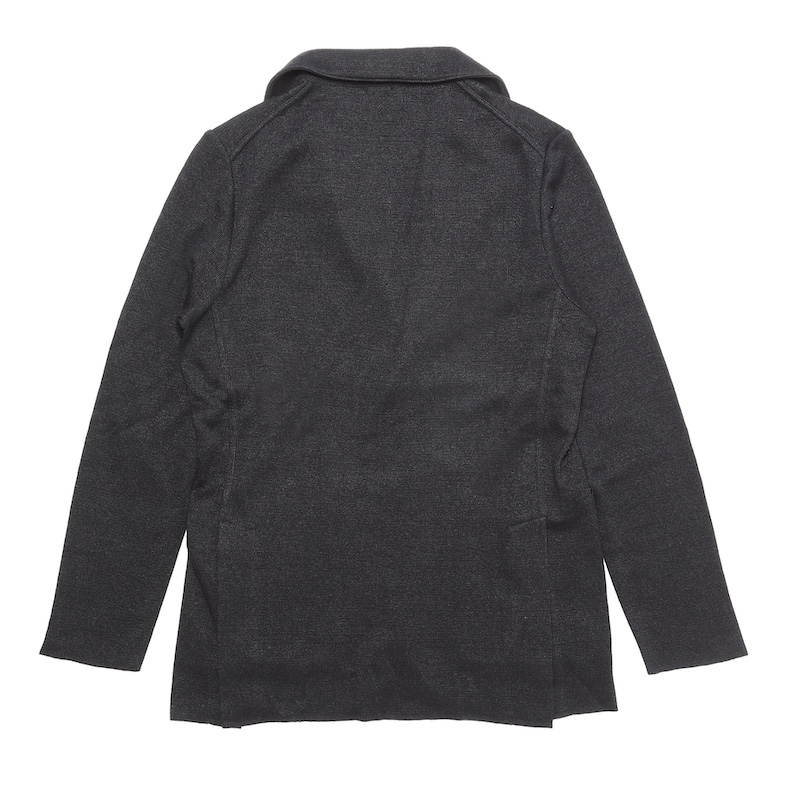 ・従来のニットジャケットでは表現されていなかったテーラードの概念を持ったニットウエアで、何種類もの機械を使い分ける編み立ての方法、副素材の使用法、パターンワーク、縫製方法は従来型のテーラードの製法でもなくニットの製法でもない独自の製法を採用しています。
