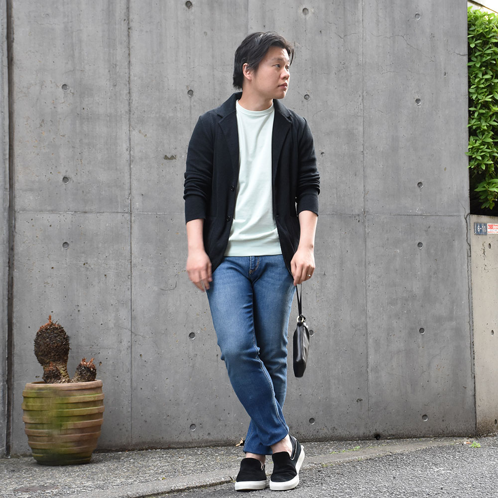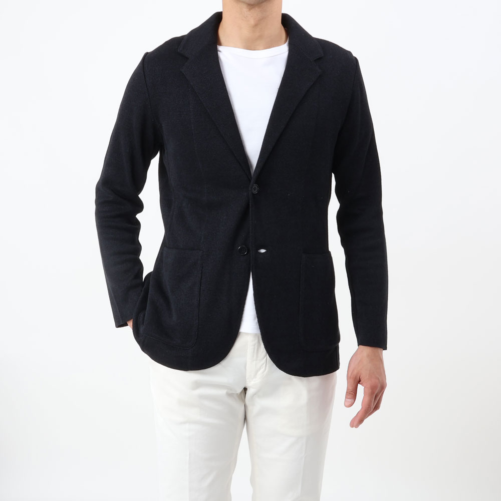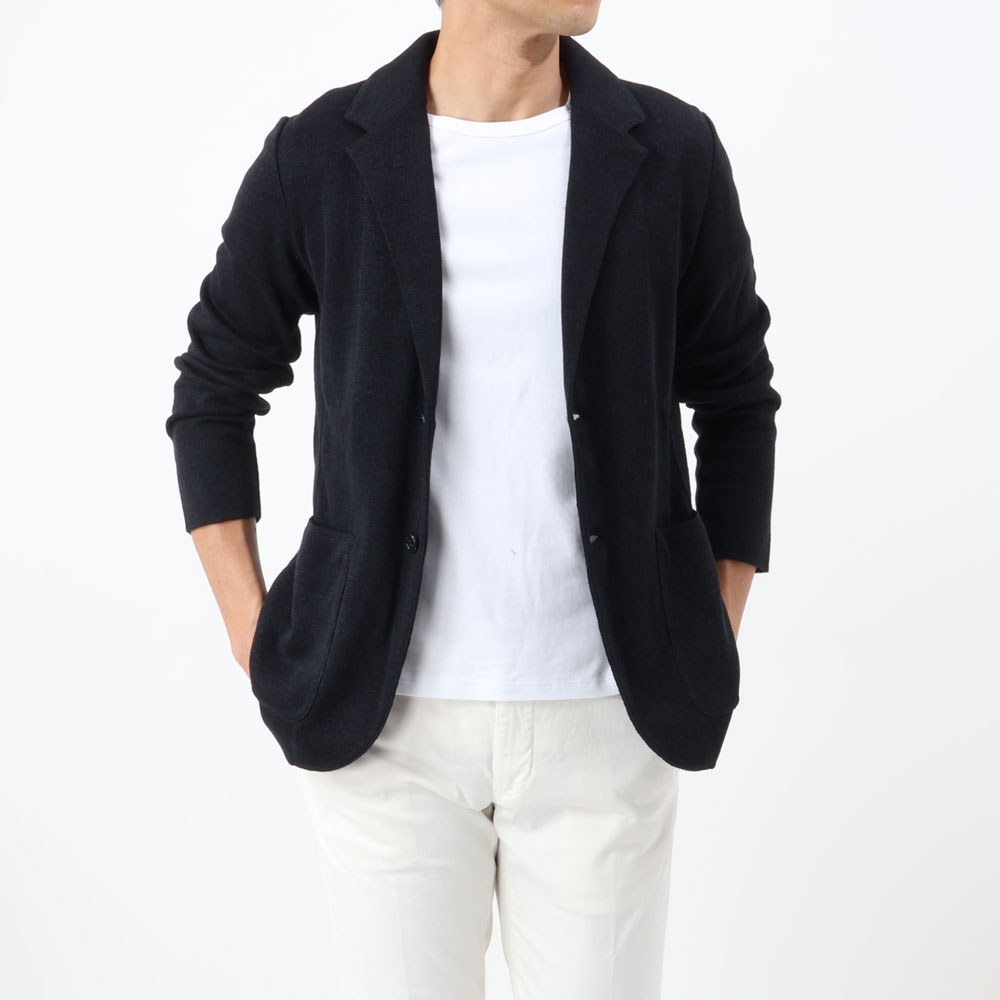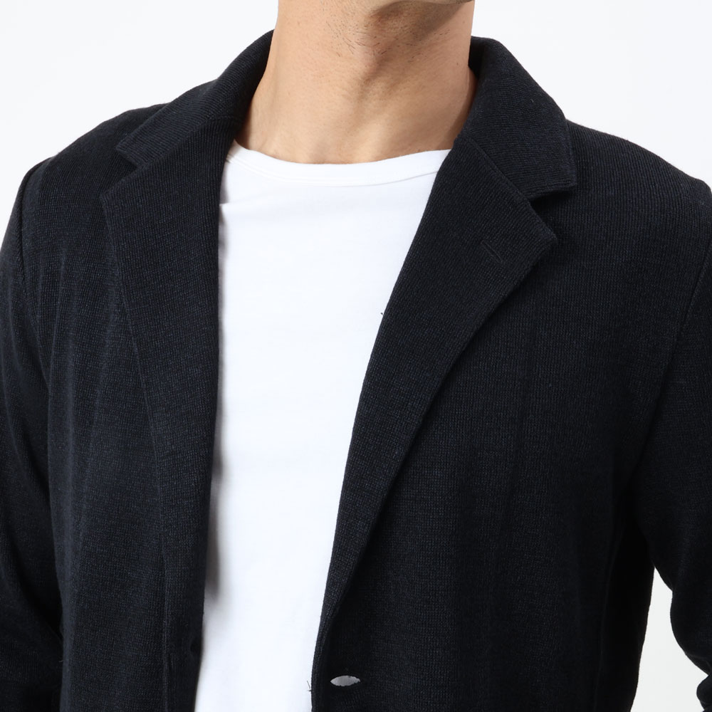 ・ラペルのデザインやフロントカットなどにテーラードジャケットの要素が盛り込まれているため、ニットタイなどを着けてカジュアルアップしたスタイリングもオススメ。出張や旅行先でのちょっとしたディナーなどにも最適です。