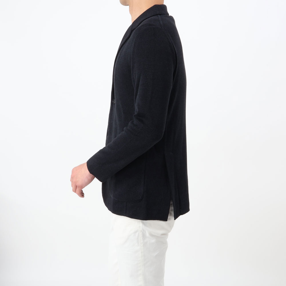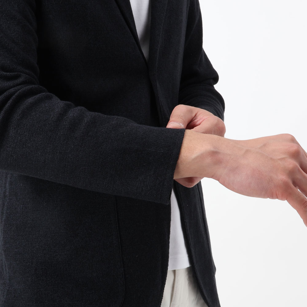 ・袖に適度なゆとりとボリュームを持たせているため、ニットジャケットにありがちな腕がスムーズに通らないストレスを解消。高次元で計算された素材感とパターンが着用時も非常に美しいシルエットを生み出します。