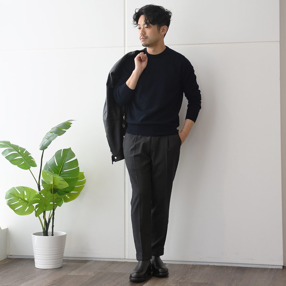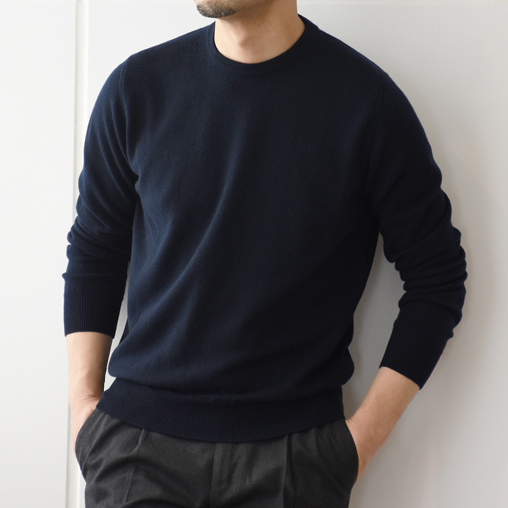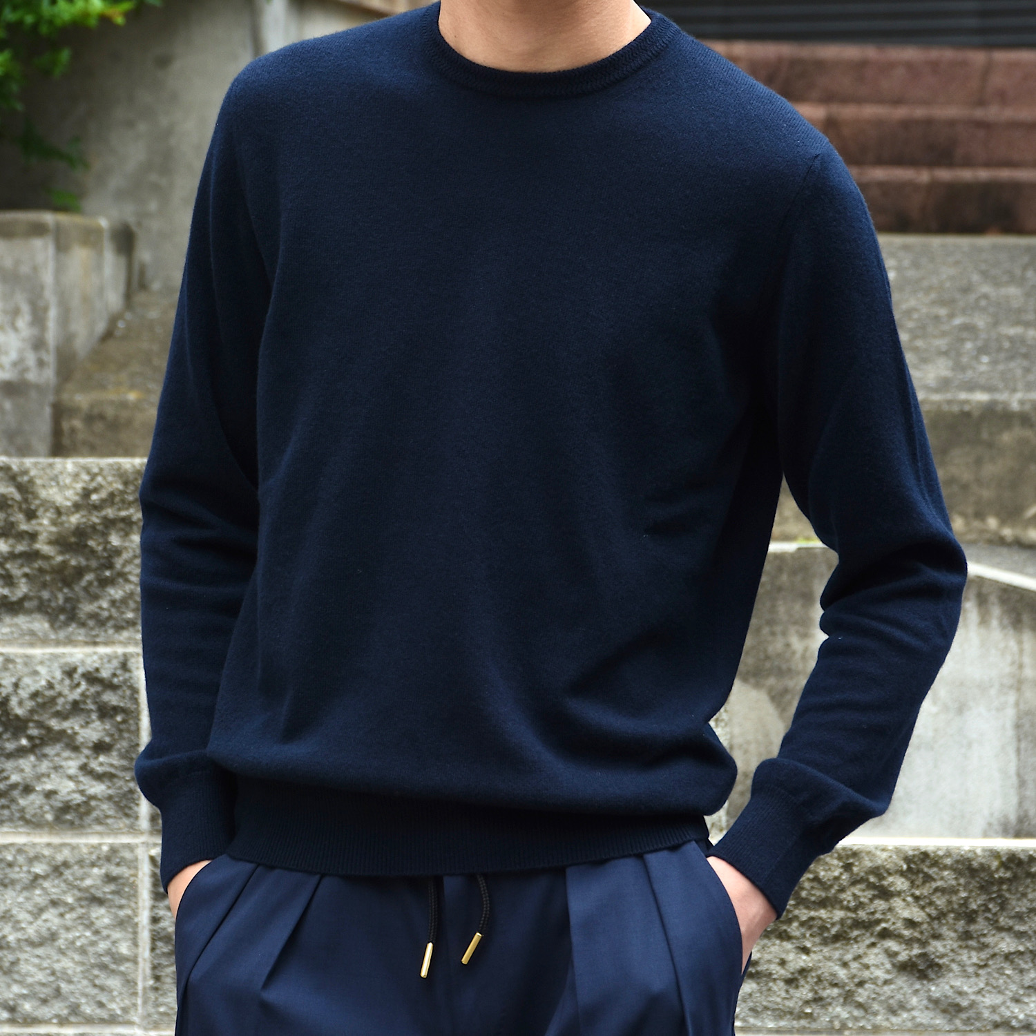 ・シルエットは上質素材を活かすべく極めてスタンダード。少しゆったりめに着用したい場合は、普段の1サイズアップもオススメです。同じ編み地でVネックもラインナップ。