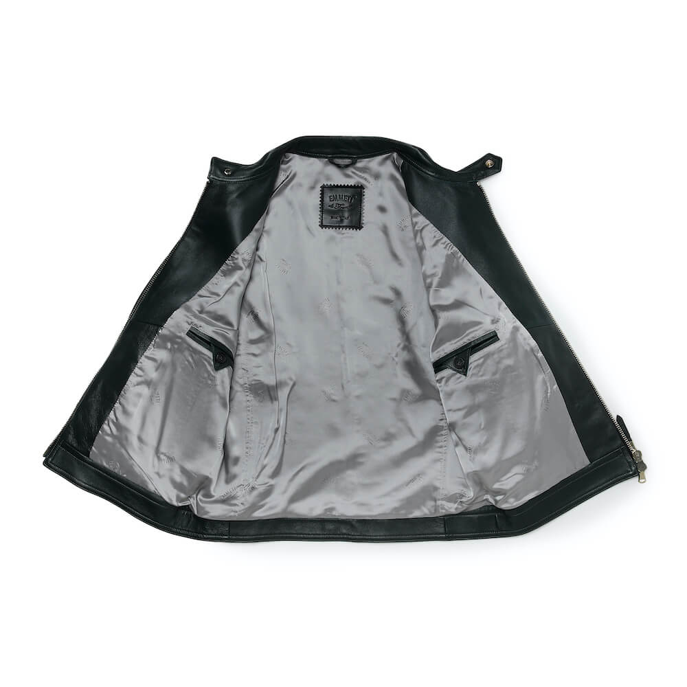 • 天然皮革ですので風合いに個体差がございます / フロントダブルジップ / 外側:ジップポケット2つ / 内側:ボタンポケット2つ / 袖口ボタン&ジップアップ、総裏地