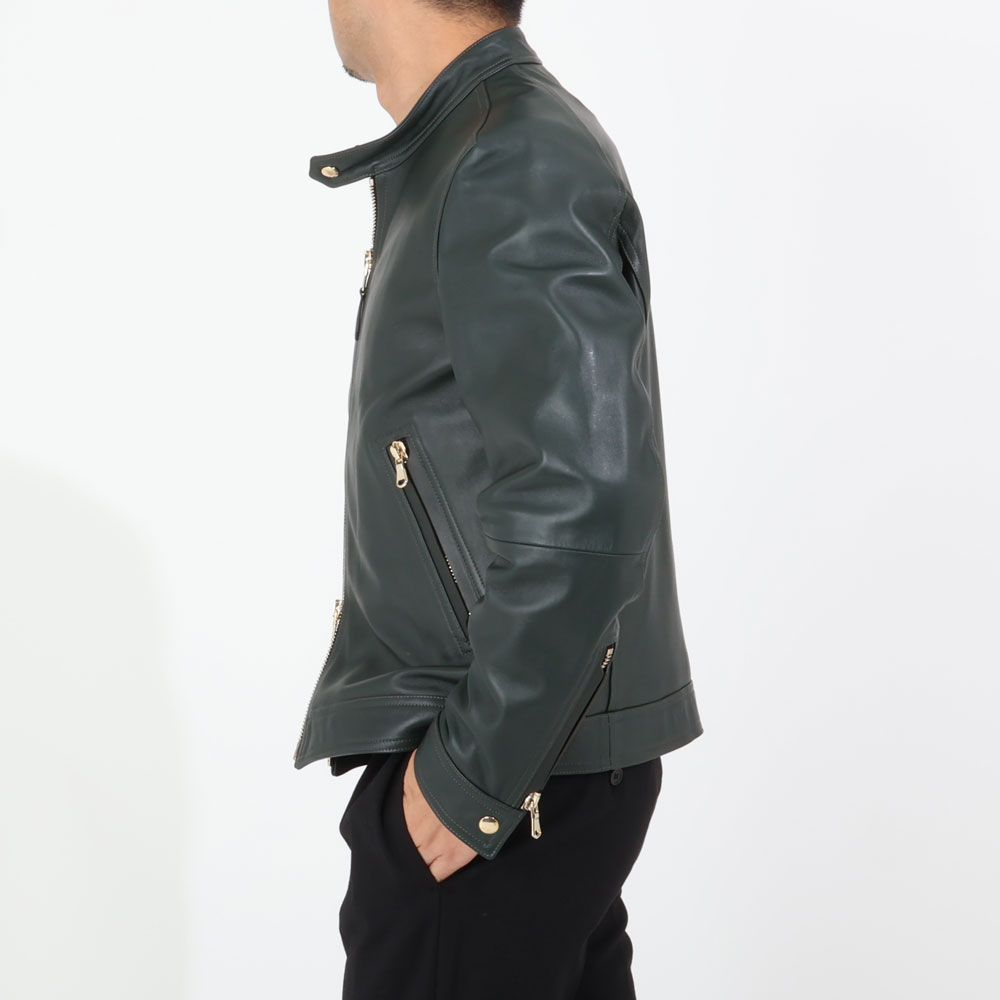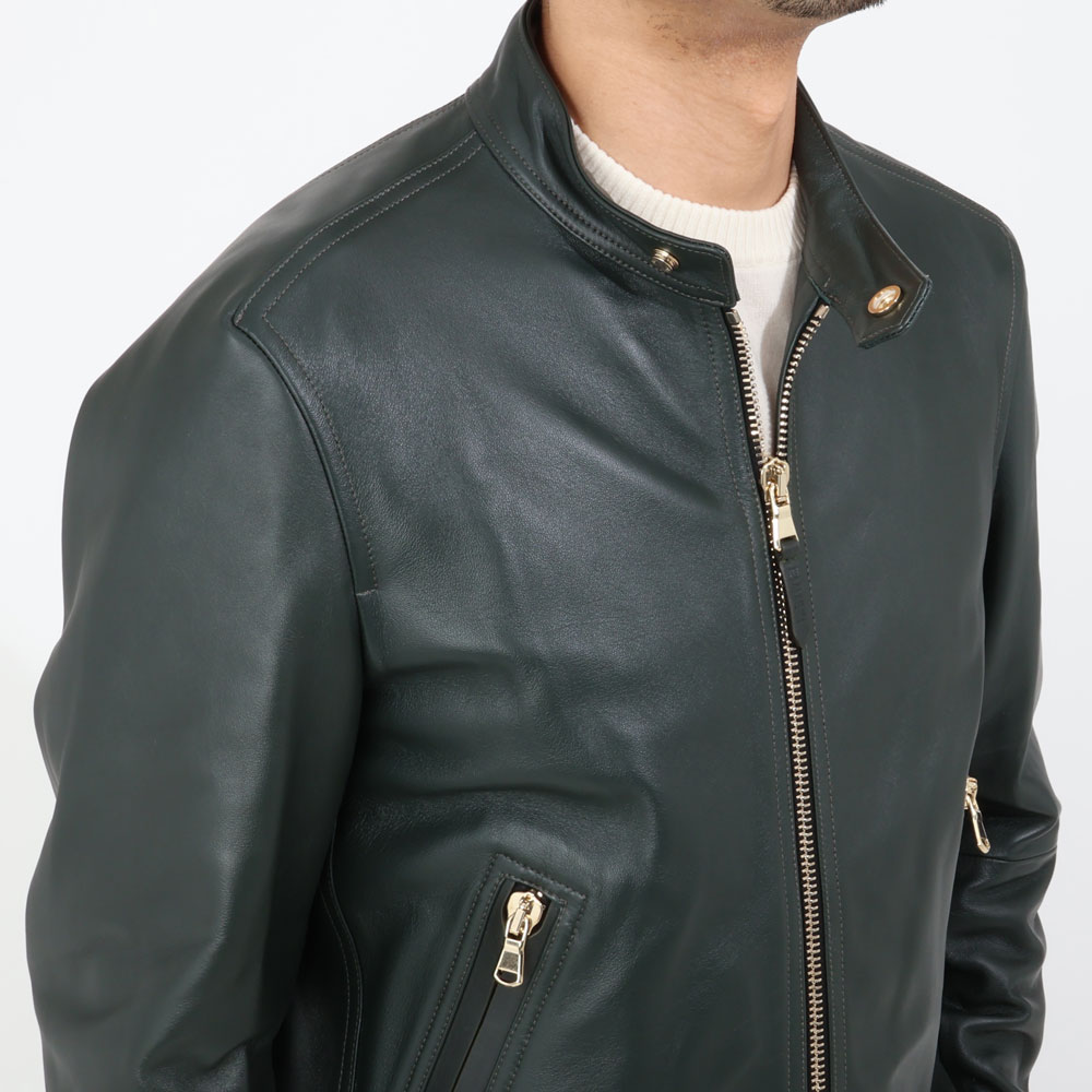 エンメティ / 【着数限定販売】【BR別注】スペシャル ラムスキンナッパレザー シングルライダース/MASSIMO BR/GOLD/ダークグリーン