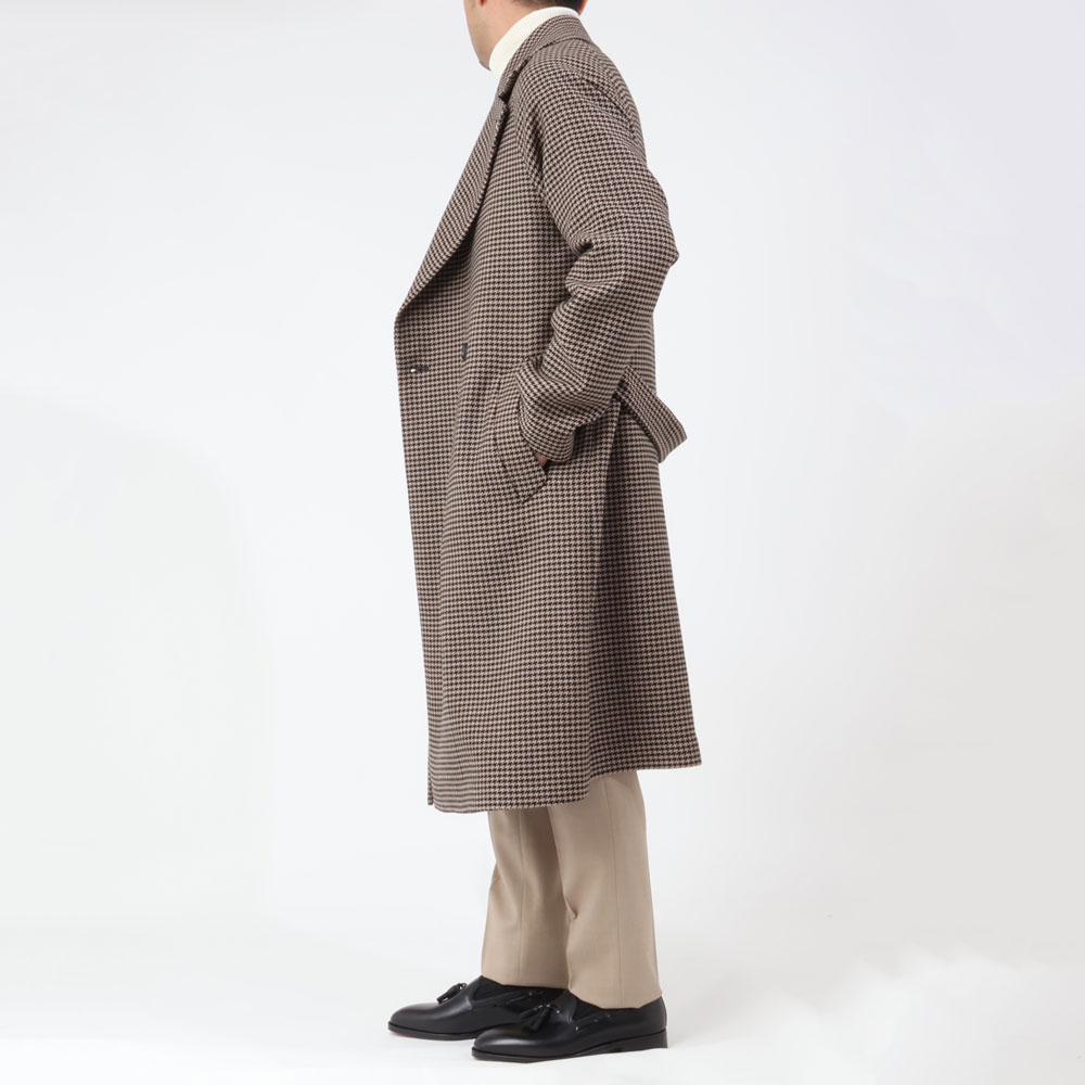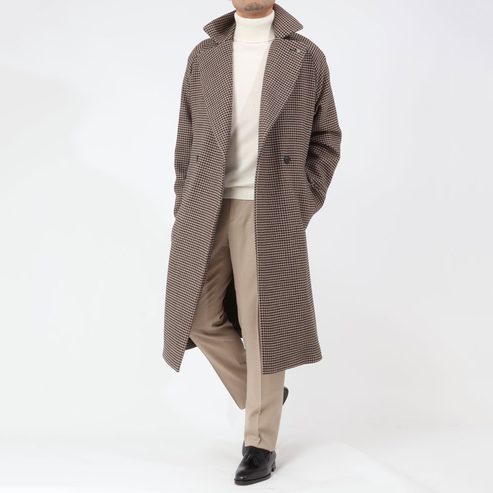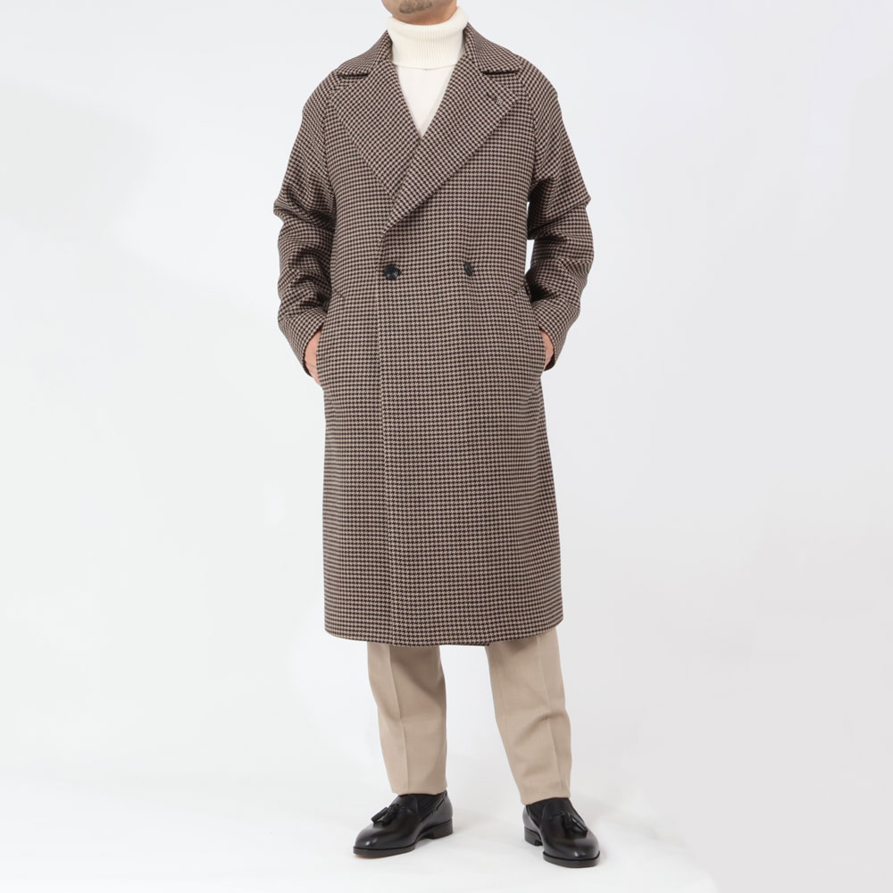 ・ラグランスリーブで丸みを帯びるショルダーライン、ダブル仕立てながら大げさ感のない襟のデザイン、そしてロング丈が目を惹きます。