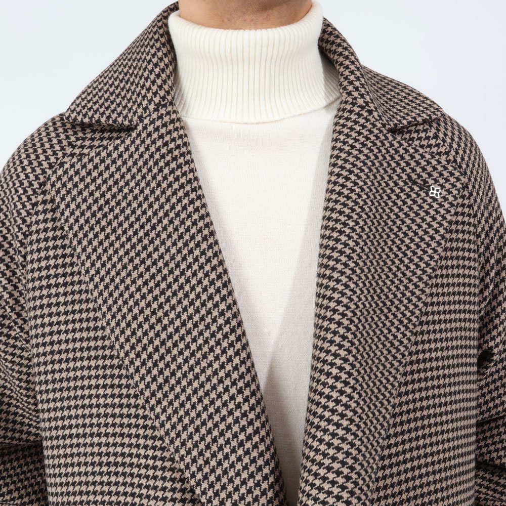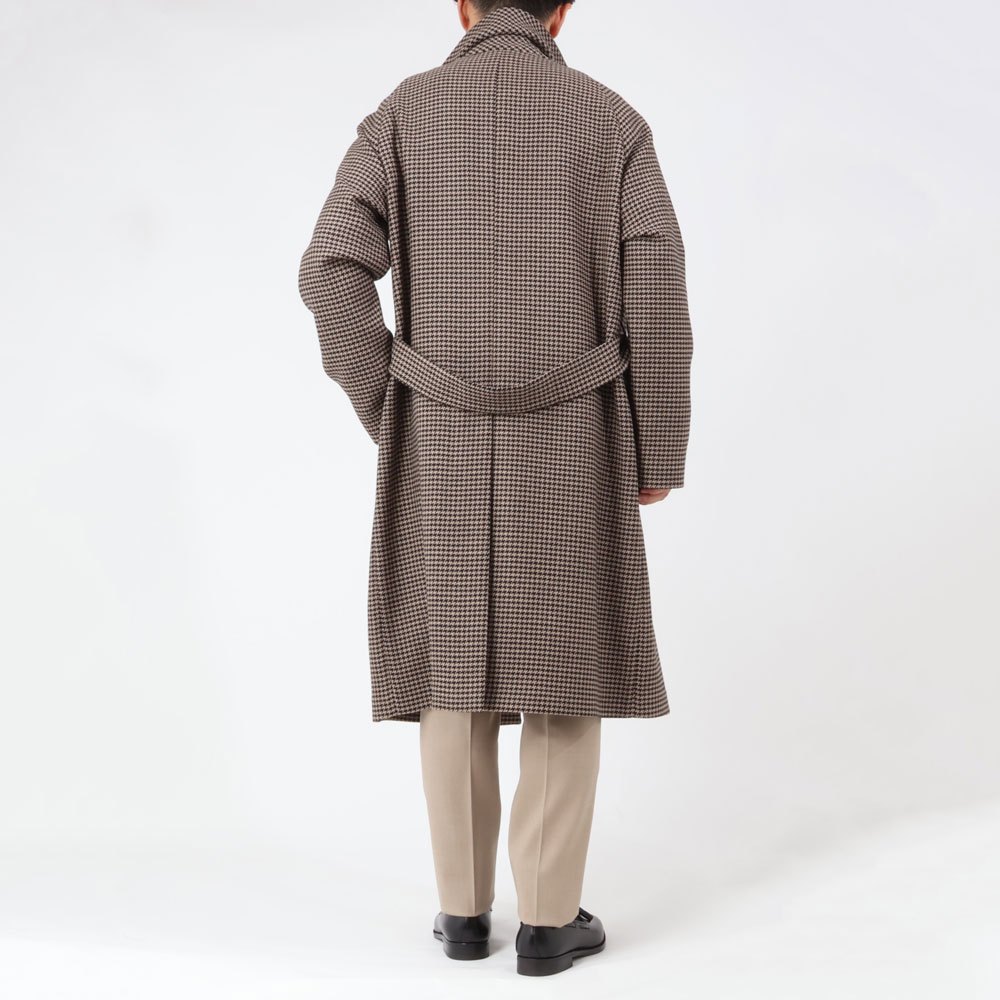 存在感抜群の一着。コーディネートで合わせる色は黒や白で纏めても良いですし、淡色を選んで柔らかい印象で着こなすのもオススメです。ベルトを締めてシルエットを引き締めても、ラフにバサッと羽織ってもサマになる、大人の洒落感漂う万能アウターです。