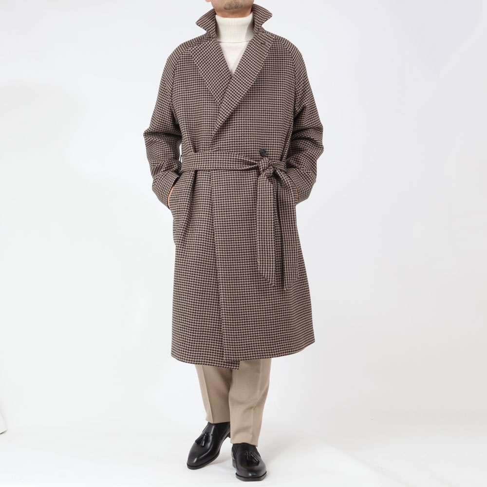 ・”ラップコート”とは、前合わせが深くベルテッドのデザインが多く、リラックスした雰囲気を醸す一着です。